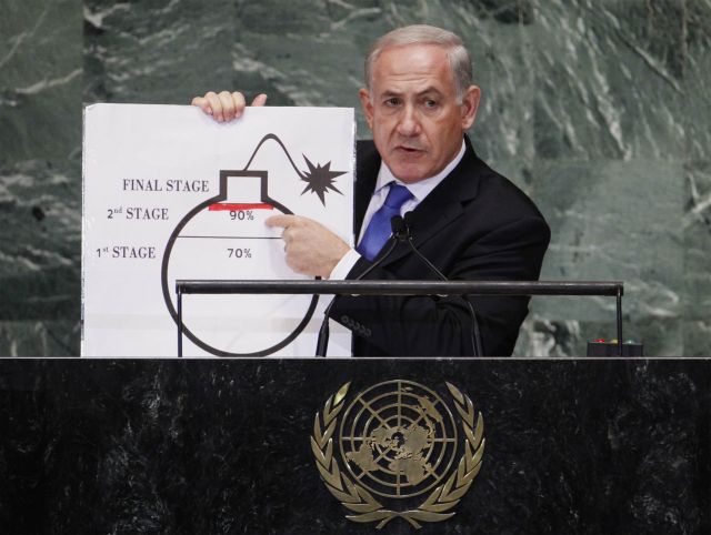 Το 2012, ο ισραηλινός πρωθυπουργός Μπεντζαμίν Νετανιάχου ήθελε να προειδοποιήσει με τον σαφέστερο δυνατό τρόπο πως το Ιράν ήταν ένα βήμα πριν την κατασκευή πυρηνικών όπλων, και το έκανε με την περίφημη κάρτα με τη βόμβα στην ομιλία του στο βήμα του ΟΗΕ.