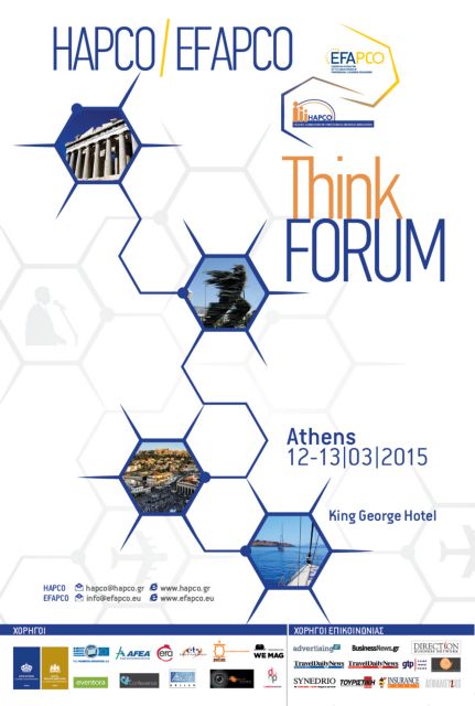 Η διοργάνωση «HAPCO / EFAPCO Think FORUM» θα πραγματοποιηθεί την Πέμπτη 12 και Παρασκευή 13 Μαρτίου 2015 και αναμένεται να αποτελέσει σημείο συνάντησης όλων των επαγγελματιών από τον χώρο των συνεδρίων και εκδηλώσεων σε ευρωπαϊκό επίπεδο.