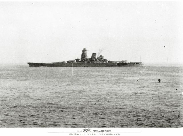 Το θωρηκτό Μουσάσι βυθίστηκε τον Οκτώβριο του 1944 από αμερικανικά αεροσκάφη. Συνολικά, 1.023 από τα 2.399 μέλη του πληρώματος σκοτώθηκαν.