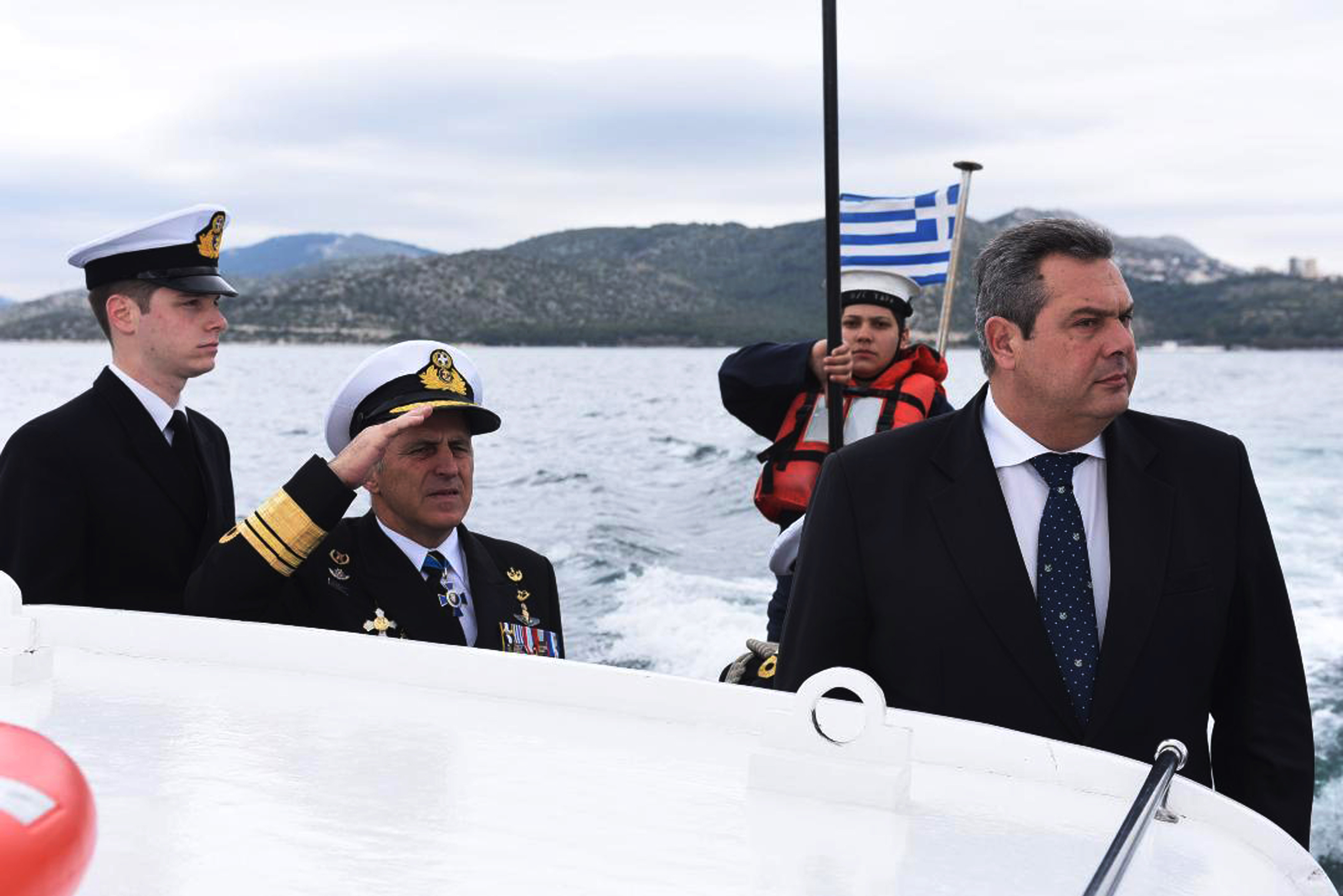 Τον κ. Καμμένο συνοδεύουν ο αρχηγός ΓΕΕΘΑ, στρατηγός Μιχαήλ Κωσταράκος, ο αρχηγός ΓΕΣ, αντιστράτηγος Βασίλειος Τελλίδης και ο αρχηγός ΓΕΝ, αντιναύαρχος Ευάγγελος Αποστολάκης.