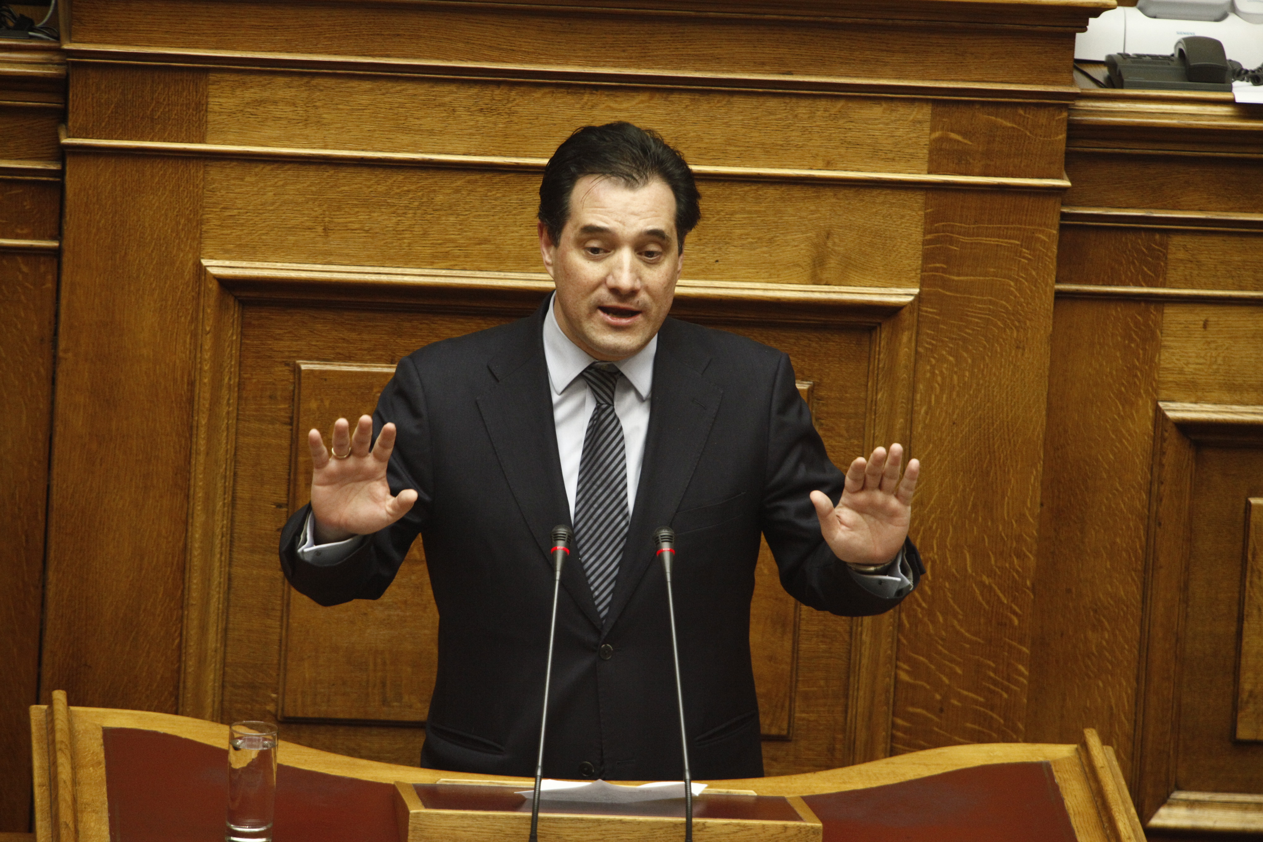 Η επίθεση του κοινοβουλευτικού εκπροσώπου της ΝΔ Άδ. Γεωργιάδη κατά του υπουργού Οικονομικών Ι. Βαρουφάκη, προκάλεσε την αντίδρασή του λίγο πριν την λήξη της συζήτησης επί του νομοσχεδίου για τις 100 δόσεις. Ο κ. Γεωργιάδη άσκησε κριτική στον επικεφαλής του οικονομικού επιτελείου της κυβέρνησης σχετικά με την καταγγελία του ότι δεν βρήκε αντίγραφο του ελληνικού αιτήματος για την δίμηνη παράταση του μνημονίου καθώς και αντίγραφα των δανειακών συμβάσεων και ότι αυτά θα μπορούσε να τα βρει στο διαδίκτυο. «Είναι στην ντουλάπα σας αλλά μάλλον δεν ξέρετε να την ανοίγετε» του είπε ο κ. Γεωργιάδης ενώ πρόσθεσε: «Λέτε ότι πετύχατε διαχωρισμό δανειακής σύμβασης και μνημονίου. Όλοι οι άλλοι στα ευρωπαϊκά κοινοβούλια όμως μιλούν για παράταση του μνημονίου και της τρόικας. Ακόμα και ο Ντάισεμπλουμ γελά όταν του αναφέρουν για το τέλος της τρόικα. Σας αρέσουν να σας κοροϊδεύουν; Όλοι το λένε τρόικα και μνημόνιο». Ενώ τον κατηγόρησε που δεν έφερε την συμφωνία προς συζήτηση στην Βουλή.