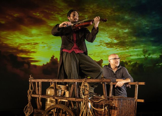 Στην παράσταση που θα δούμε στο Badminton την απόδοση κειμένου υπογράφει ο Πάνος Αμαραντίδης και των στίχων ο Γεράσιμος Ευαγγελάτος. Για τον κατενθουσιασμένο από την «ελληνοαμερικανική συμμαχία» Ρουτζιέρο, ο οποίος υπόσχεται έναν πολύ ρεαλιστικό και ανθρώπινο «Βιολιστή», σημαντικό στοιχείο της παράστασης είναι ότι χρησιμοποιείται πραγματικός βιολιστής, ο Μαξ Τσάκερ (τη διεύθυνση της 20μελούς ζωντανής ορχήστρας έχει αναλάβει ο Αλέξιος Πρίφτης). Εκτός άλλων στο πλευρό του Βαλτινού εμφανίζονται η Ρένια Λουιζίδου, ο Μέμος Μπεγνής, ο Μιχάλης Μαρίνος, η Ιωάννα Τριανταφυλλίδου, η Μαριάννα Πολυχρονίδη, ο Ιβάν Σβιτάιλο και 30 ακόμη ηθοποιοί και χορευτές.