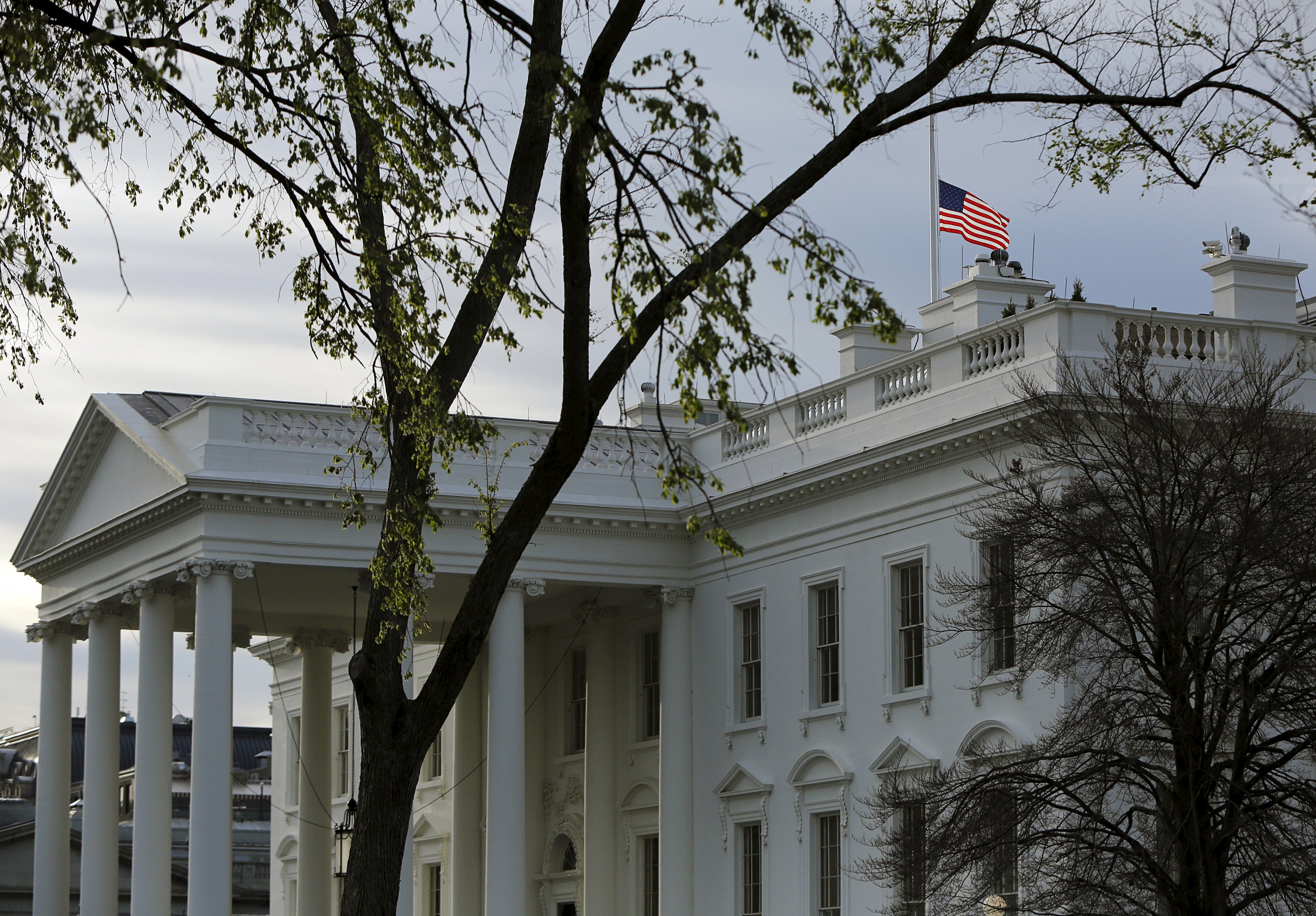 The U.S. flag flies at half-staff at the White House in Washington April 15, 2015. The 16th President of the United States, Abraham Lincoln, died 150 years ago this morning, the result of being assassinated at Ford's Theatre on the evening of April 14, 1865, by actor John Wilkes Booth. President Barack Obama issued a proclamation for the flags to be flown at half-staff to honor the anniversary of the assassination. REUTERS/Gary Cameron (File: 2015-04-15T122322Z_1713614593_GF10000059820_RTRMADP_3_USA-LINCOLN.JPG )