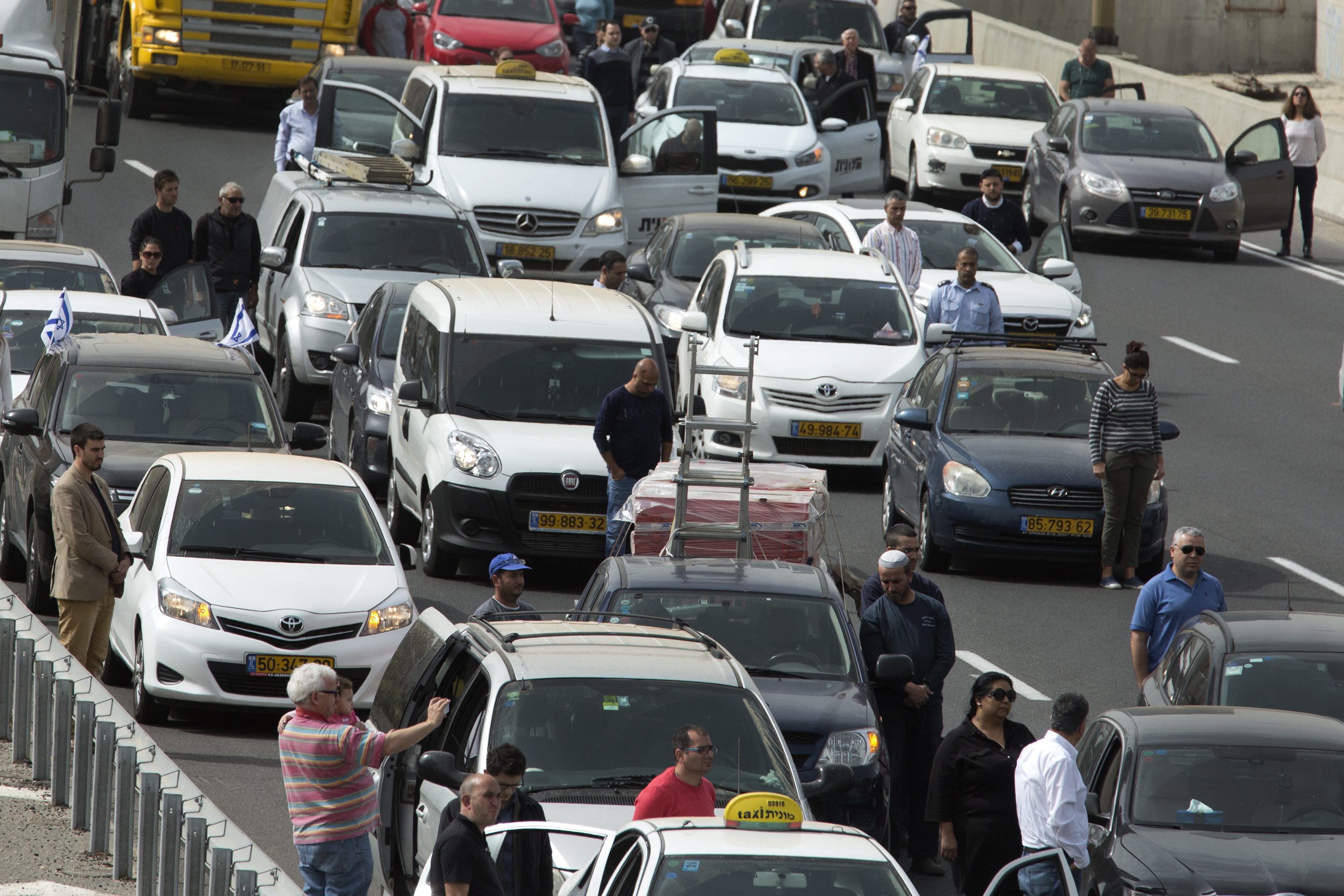 Τα αυτοκίνητα, το τραμ της Ιερουσαλήμ, τα λεωφορεία, οι πεζοί ακινητοποιήθηκαν για δύο λεπτά κάτω από έναν συννεφιασμένο ουρανό.