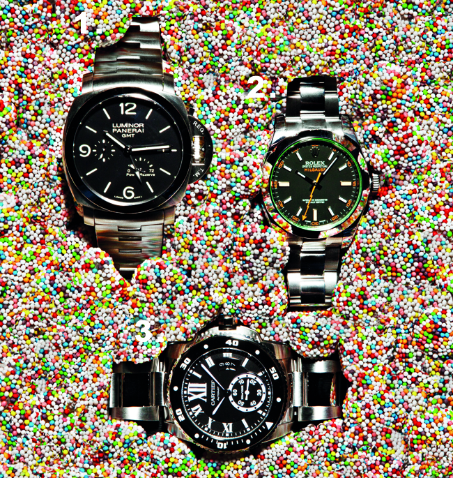 Αυτόματο, ατσάλινο ρολόι Luminor 1950 GMΤ, 44 χλστ., αδιάβροχο στα 300 μ., €8.700 (Ora Kessaris).