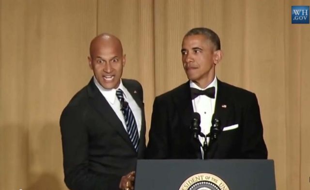 Μαζί στήνουν ένα σκετσάκι, με τον Λούθερ (τον γνωστό ηθοποιό Κίγκαν-Μάικλ Κέι) να εκφράζει αυτό που πραγματικά σκέφτεται ο Αμερικανός πρόεδρος μέσα σε γέλια και χειροκροτήματα…