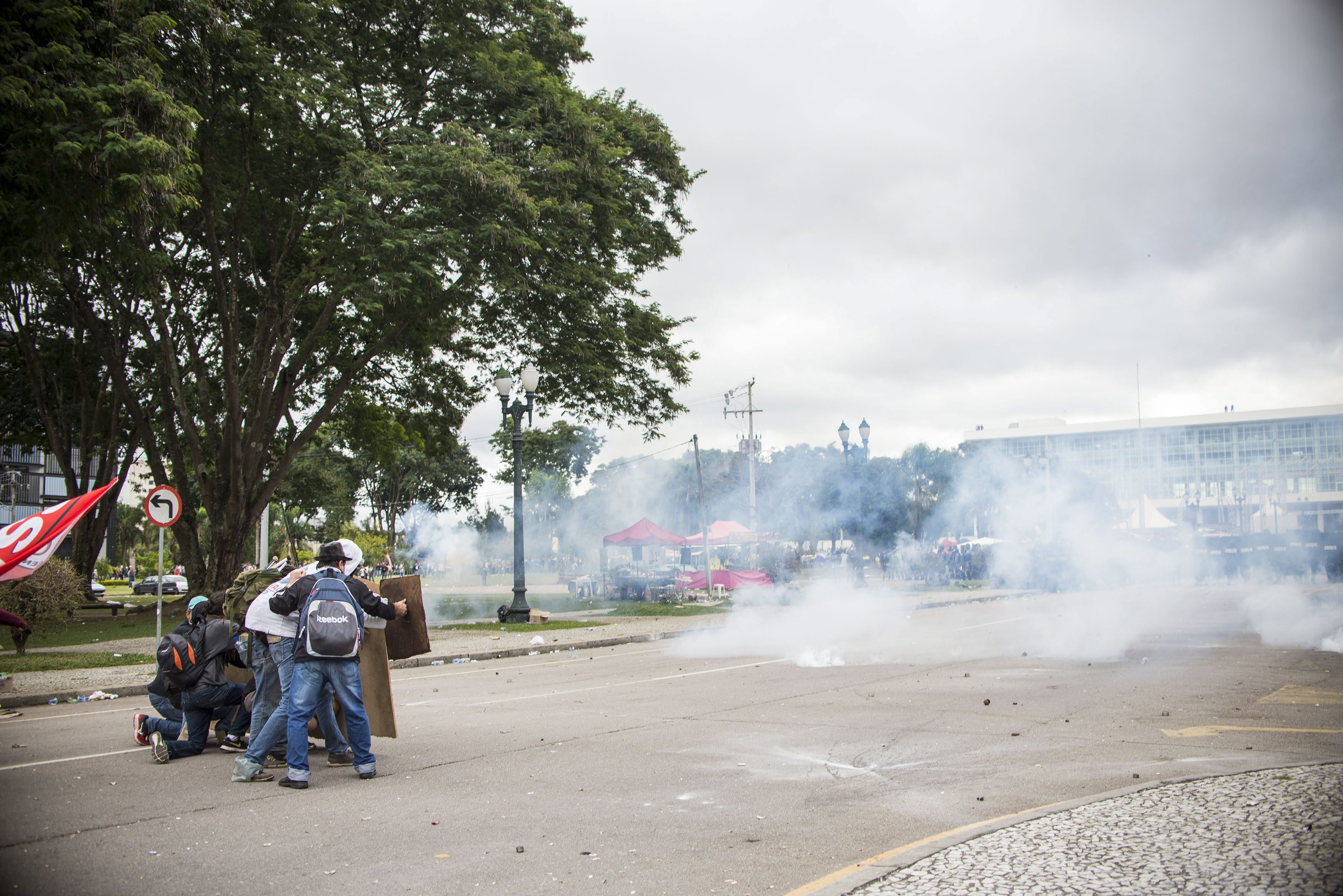 Βίντεο που αναρτήθηκαν στον ιστότοπο της εφημερίδας Gazeta do Povo δείχνουν αστυνομικούς να εκτοξεύουν δακρυγόνα εναντίον του πλήθους των διαδηλωτών καθώς οι τελευταίοι προσέγγιζαν το κοινοβούλιο της πολιτείας Παρανά, όπου διεξαγόταν ψηφοφορία επί ενός σχεδίου νόμου που μεταβάλλει τους όρους συνταξιοδότησης για τους δασκάλους.