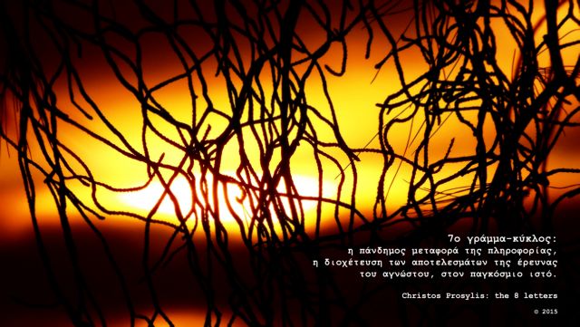 «Τα 8 Γράμματα» (The 8 Letters) τιτλοφορείται η νέα εικαστική έκθεση του σκηνοθέτη, συγγραφέα, new media artist και καλλιτεχνικού διευθυντή του London Greek Film Festibal Χρήστου Προσύλη η οποία πραγματοποιhuεί στο χώρο της γκαλερί του café bar BOO! από την Δευτέρα 4 μέχρι την Κυριακή 10 Μαΐου 2015. Η έκθεση περιλαμβάνει digital art, video art installation, sound art και performance.