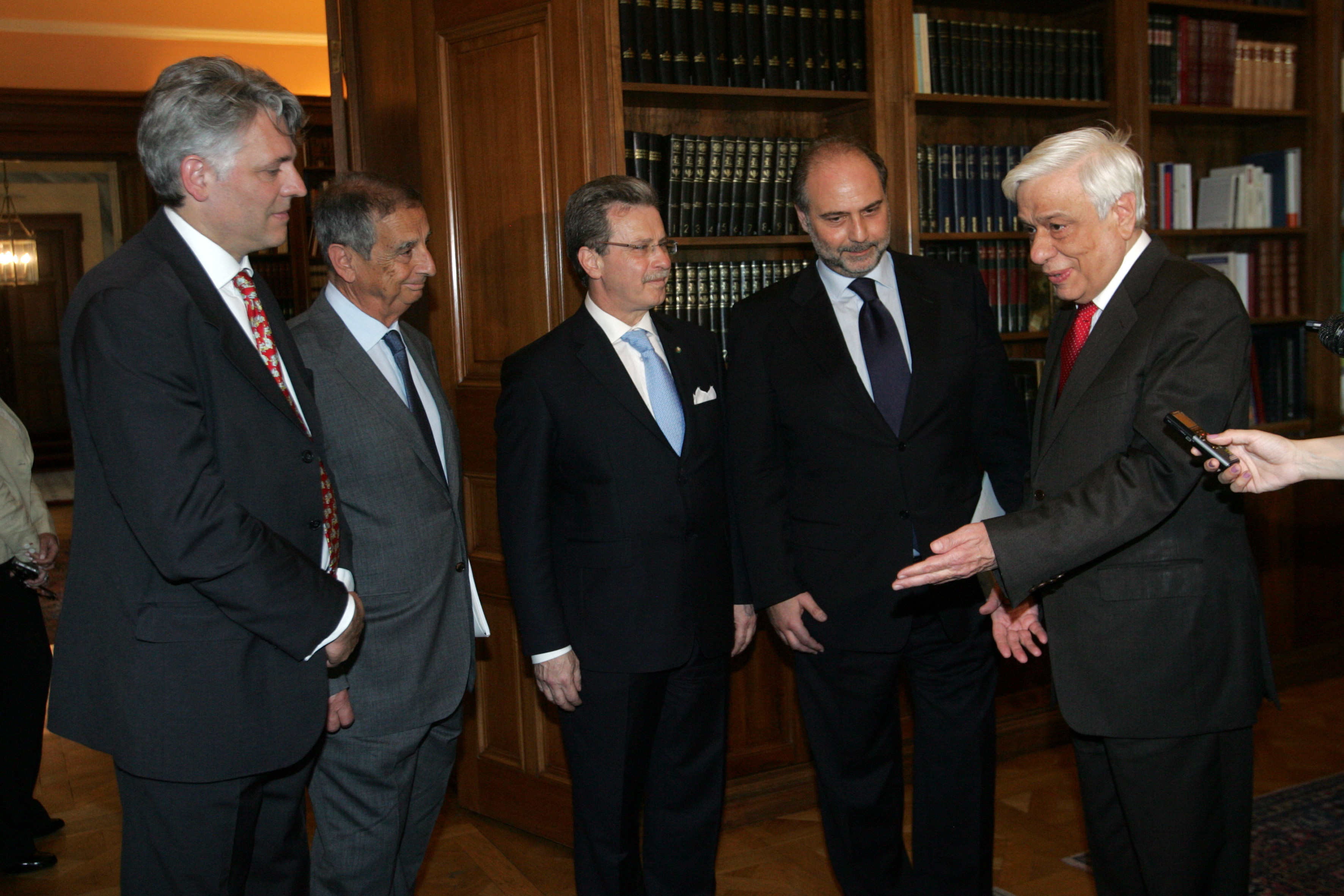 Ο πρόεδρος του Ελληνοβρετανικού Εμπορικού Επιμελητηρίου, Χάρης Οικονομόπουλος, αφού ευχαρίστησε τον κ. Παυλόπουλο για την ακρόαση, δήλωσε: «Ως Ένωση Διμερών Ελληνοευρωπαϊκών Επιμελητηρίων ήρθαμε για να μοιραστούμε μαζί σας, όχι απλώς τη σφοδρή ανησυχία μας για την οικονομική πορεία της χώρας, όπου φαίνεται ότι το ρολόι έχει σταματήσει ενώ πραγματικά τρέχει, αλλά και τις ελπίδες μας, τη βεβαιότητά μας, για την έκρηξη ανάπτυξης που μπορεί να υπάρξει, εάν απλώς τα βασικά, τα οποία είναι λάθος, επιτέλους διορθωθούν».
