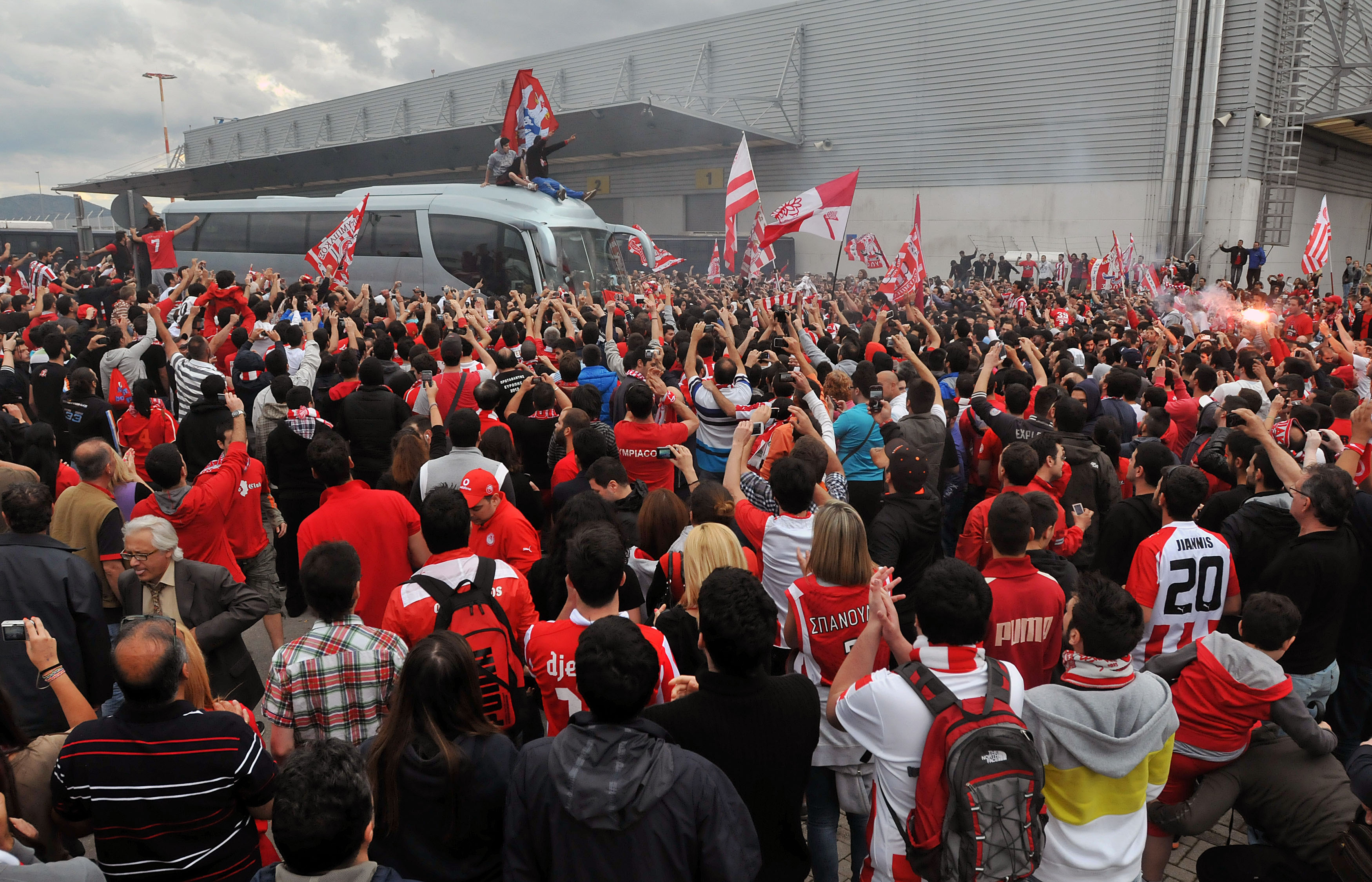 Τι και αν οι Πειραιώτες δεν κατάφεραν να κατακτήσουν το 4ο ευρωπαϊκό τρόπαιο χάνοντας από τη Ρεάλ, οι φίλοι της ομάδας, χάρισαν ένα όμορφο χειροκρότημα στους εφετινούς φιναλίστ αποδεικνύοντας πως ο σεβασμός και η υπερηφάνεια για την προσπάθεια δεν χάθηκαν μαζί με τον τίτλο. Μάλιστα, οι λιγοστοί φίλαθλοι είχαν μαζευτεί από νωρίς το μεσημέρι στα Σπάτα, με την θερμοκρασία να αγγίζει τους 30 βαθμούς κελσίου, αλλά αυτός δεν τους εμπόδισε να υποδεχτούν την αποστολή όπως της άρμοζε. Οι φίλοι της ομάδας δεν σταμάτησαν να φωνάζουν συνθήματα και να υπόσχονται μαζική στήριξη εν όψει των πλέι οφ του πρωταθλήματος, αρχής γενομένης από τα ματς με τον Κόροιβο Αμαλιάδας το προσεχές Σάββατο.