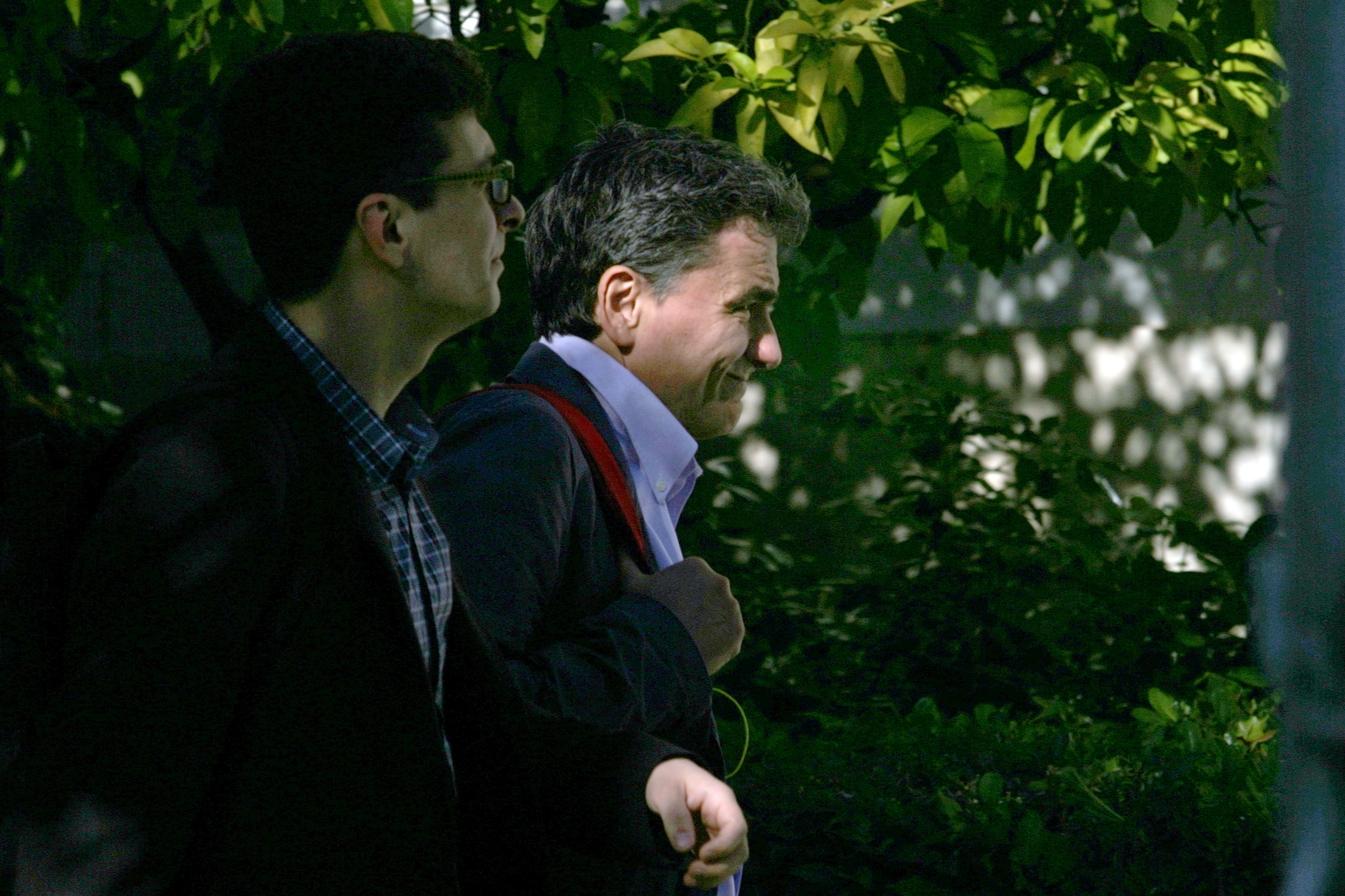 Ο πρωθυπουργός έχει συνεργασία αυτή την ώρα με τον υπουργό Οικονομικών Γιάνη Βαρουφάκη και τον υπουργό Οικονομίας Γιώργο Σταθάκη.