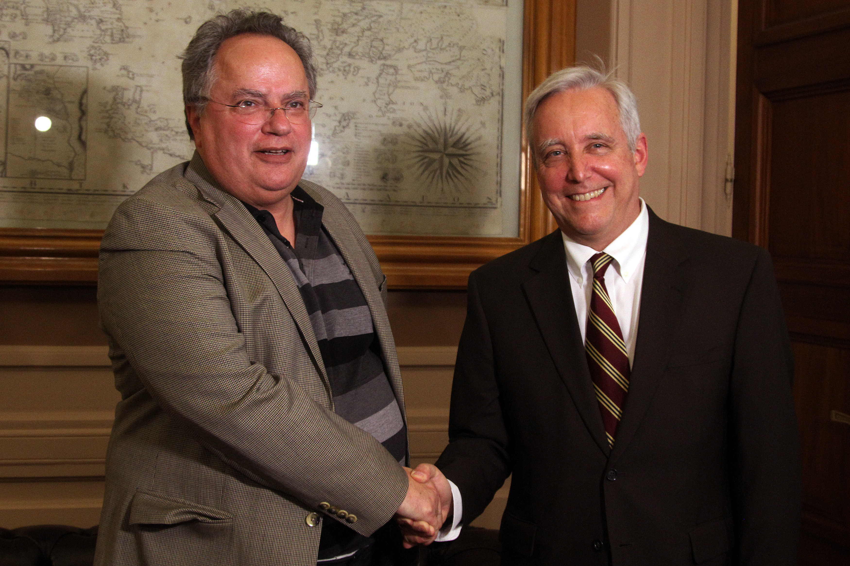 Αισιόδοξος ότι θα εξευρεθεί λύση στο ελληνικό ζήτημα δήλωσε ο πρέσβης των ΗΠΑ Ντέιβιντ Πιρς μετά την συνάντηση που είχε με τον υπουργό Εξωτερικών Νίκο Κοτζιά, στο υπουργείο Εξωτερικών, το απόγευμα της Τρίτης.