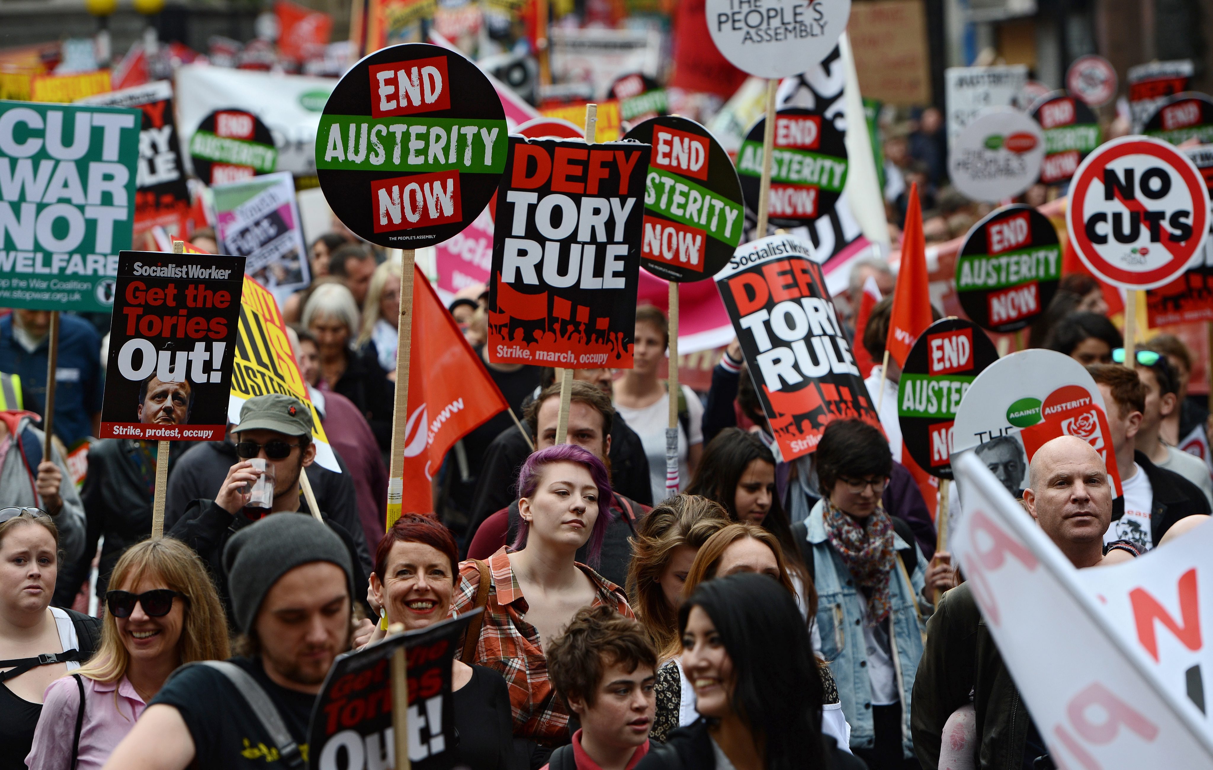 Η διαδήλωση αυτή, η πρώτη μετά τη νίκη των Συντηρητικών στις βουλευτικές εκλογές της 7ης Μαΐου, συνιστά «την αρχή μιας εκστρατείας διαμαρτυριών, απεργειών, άμεσων δράσεων και πολιτικής ανυπακοής σε όλη τη χώρα», δήλωσε ο Σαμ Φέρμπερν, ένας εκπρόσωπος της ομάδας People’s Assembly (Λαϊκή Συνέλευση) που οργάνωσε την κινητοποίηση.