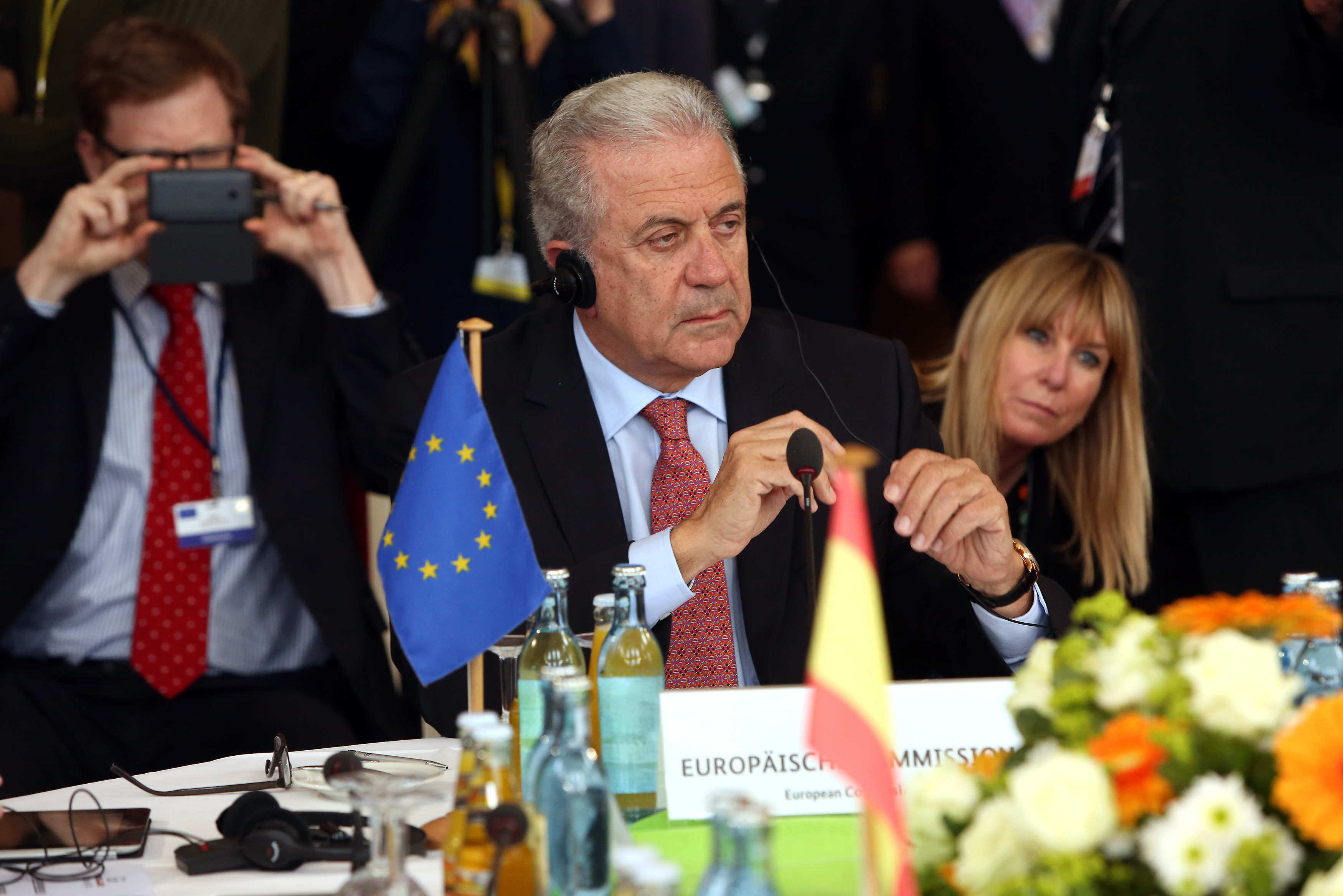 Ο κ. Αβραμόπουλος με τη σειρά του παρουσίασε αναλυτικά τους βασικούς άξονες του σχεδίου της Ε.Ε. για το μεταναστευτικό ζήτημα, τονίζοντας τις προκλήσεις που αυτό παρουσιάζει τόσο για τη χώρα μας όσο και για την Ευρώπη στο σύνολό της.