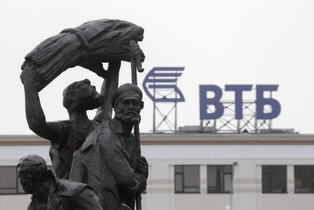 A fragment of a monument to Soviet state founder Vladimir Lenin is on display, with the advertising logo of VTB Bank seen in the background, in Stavropol, southern Russia, January 22, 2015. Russian firms may carry out a number of buy-backs of their own debt in 2015, Yuri Solovyov, a first deputy chairman at VTB Bank, Russia's No. 2 bank, told reporters. REUTERS/Eduard Korniyenko (RUSSIA - Tags: BUSINESS CITYSCAPE) (File: 2015-01-22T124951Z_1154105199_GM1EB1M1LS301_RTRMADP_3_DAVOS-MEETING-RUSSIA-VTB.JPG )