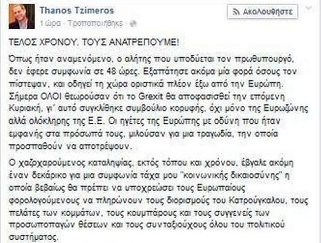 Καταλήγει ότι «την Παρασκευή πρωί ή υπογράφουν ή ξηλώνονται».