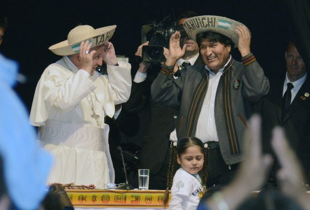 Ο Πάπας Φραγκίσκος μίλησε μετά από τον βολιβιανό πρόεδρο Εβο Μοράλες, ο οποίος φορούσε ένα σακάκι με απεικόνιση του αργεντινού επαναστάτη Ερνέστο Τσε Γκεβάρα, που εκτελέστηκε στη Βολιβία το 1967 από βολιβιανούς στρατιώτες υπό την καθοδήγηση της αμερικανικής κεντρικής υπηρεσίας πληροφοριών (CIA).