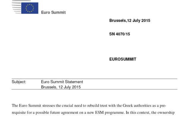 The statement outlines what needs to be done. By the 15th of July the Greek government will have to commit to the following: