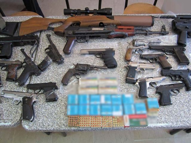 Σε έρευνες στα σπίτια των δραστών, βρέθηκαν και κατασχέθηκαν 29 πιστόλια και περίστροφα, πέντε πολεμικά τυφέκια μεταξύ των οποίων τρία Καλάσνικοφ, 156 πυροκροτητές και 500 μέτρα φυτίλι, 10.500 φυσίγγια διαφόρων διαμετρημάτων, 12.000 φυσίγγια, τρία κιλά χάλυβα για την κατασκευή βολίδων, 650 κάλυκες διαφόρων διαμετρημάτων, 27.555 ευρώ και 35 γραμμάρια χασίς.