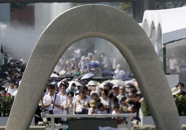 Τη μνήμη των νεκρών της από την ρίψη της πρώτης ατομικής βόμβας στον κόσμο τίμησε η Χιροσίμα 70 χρόνια μετά. Οι καμπάνες χτυπούσαν πένθιμα και χιλιάδες άτομα προσευχήθηκαν για τα 140.000 θύματα, σε μία επέτειο που έφερε στο προσκήνιο την ολοένα αυξανόμενη ένταση στη χώρα.