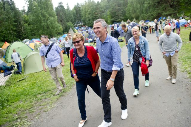Συνηθισμένος στις κατασκηνώσεις αυτές στο Ουτόγια από τη δεκαετία του 1970, ο Γενικός Γραμματέας του ΝΑΤΟ Γενς Στόλτενμπεργκ, ο οποίος ανήκει στο Εργατικό Κόμμα και ήταν πρωθυπουργός όταν είχαν πραγματοποιηθεί οι επιθέσεις, ήταν επίσης παρών.