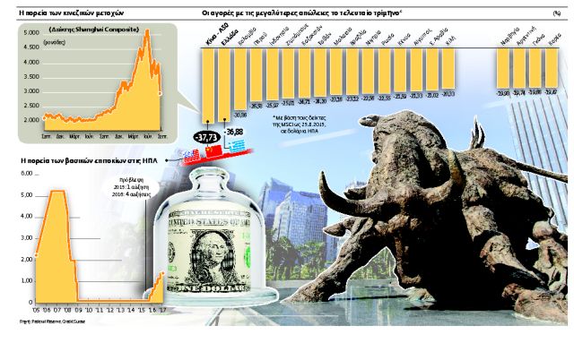 Παράλληλα, ενώ οι αγορές ανέμεναν αύξηση των επιτοκίων από την Ομοσπονδιακή Τράπεζα των ΗΠΑ (Fed) στην επικείμενη συνεδρίασή της τον Σεπτέμβριο, κάτι που οδηγεί σε εκροές κεφαλαίων, ιδίως από τις αναδυόμενες αγορές, μετά την καταρράκωση σε μετοχές, νομίσματα και εμπορεύματα, οι περισσότεροι αναλυτές έχουν μεταθέσει για αργότερα την πιθανολογούμενη αύξηση επιτοκίων. Ωστόσο, όπως εκτιμάται, η ανάκαμψη των μετοχών της Κίνας τις τελευταίες ημέρες θα είναι βραχυπρόθεσμη επειδή η κρατική παρεμβατικότητα κοστίζει πολύ και οι αποτιμήσεις δεν δικαιολογούνται. Να σημειωθεί ότι με την αξία της ελεύθερης διασποράς των κινεζικών μετοχών (free-float) να κυμαίνεται μόλις στο 25% του ΑΕΠ της χώρας, καθώς οι Κινέζοι ανακάλυψαν τις μετοχές, αφού το 15% των νοικοκυριών βρέθηκε πλέον να επενδύει στο Χρηματιστήριο, οι αξίες είχαν εκτιναχθεί και δεν ήταν λίγοι εκείνοι που έκαναν λόγο για «φούσκα».