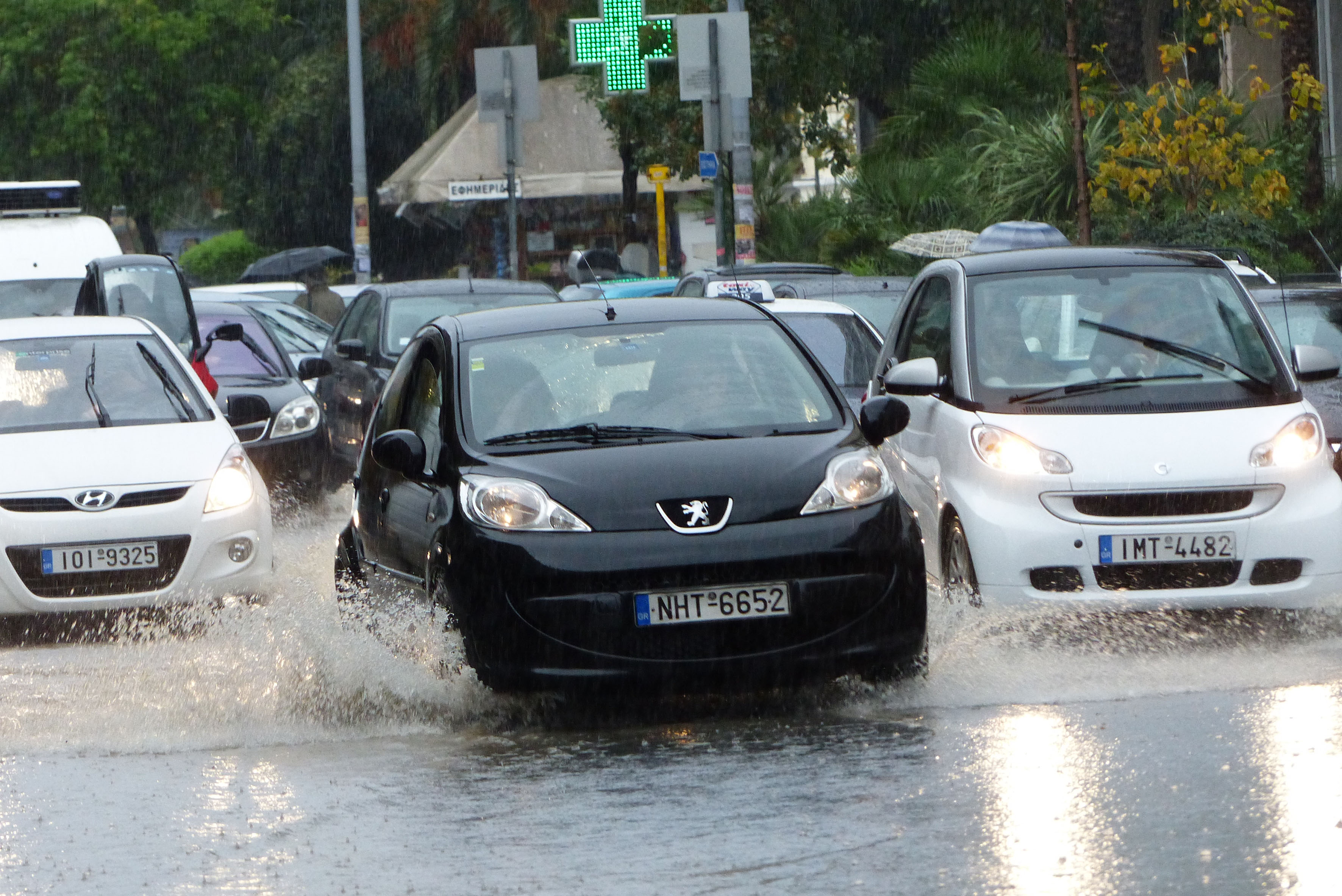 Η καταιγίδα σταμάτησε όταν το ύψος του νερού στους δρόμους είχε φτάσει σε οριακό σημείο για να πλημμυρίσουν τα καταστήματα της πόλης.