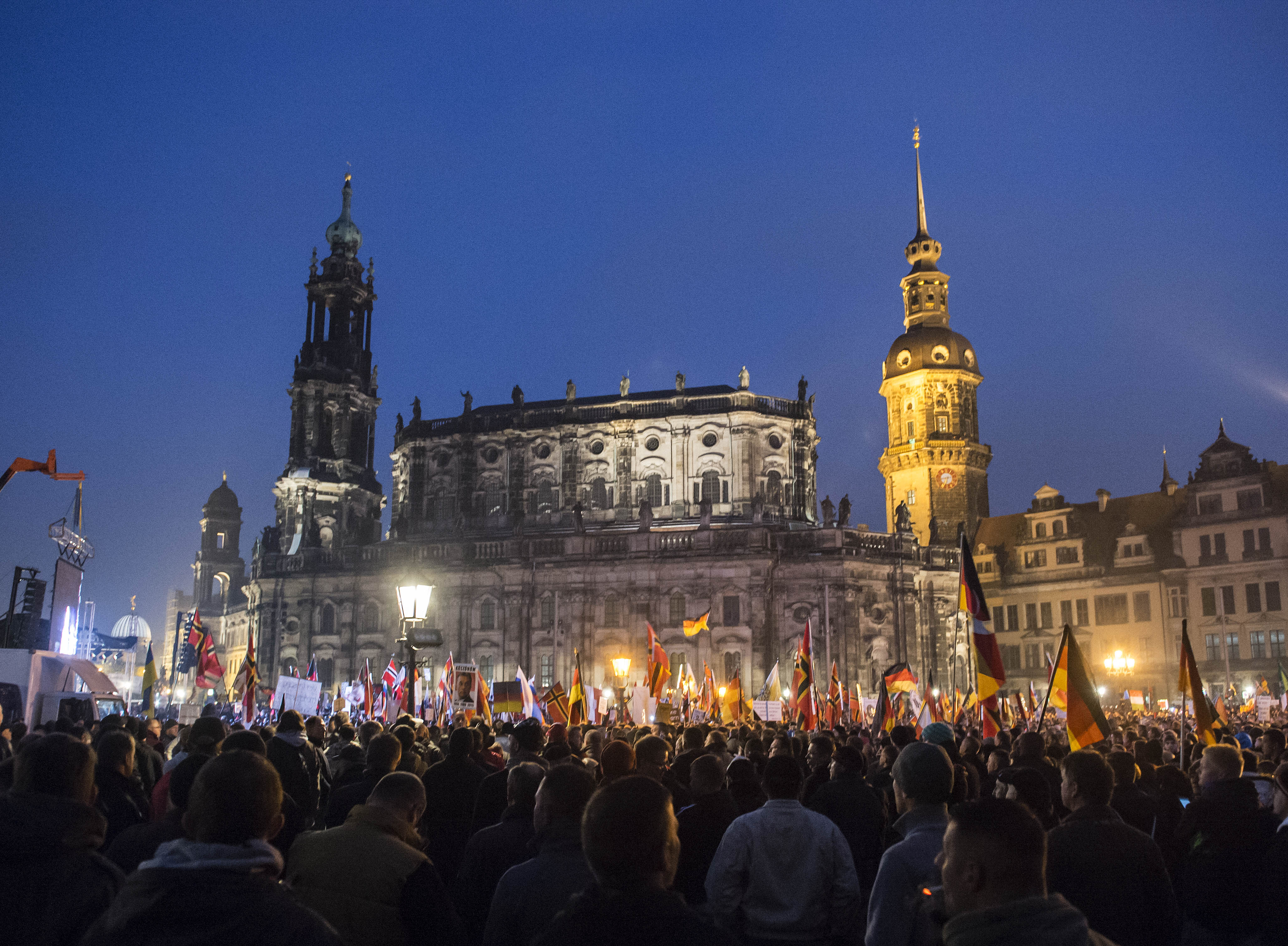 Η Δρέσδη βρέθηκε επί ποδός το βράδυ της Δευτέρας, με χιλιάδες να διαδηλώνουν υπέρ αλλά και χιλιάδες να διαδηλώνουν κατά του ξενοφοβικού κινήματος Pegida που «γιόρταζε» τον έναν χρόνο διαδηλώσεων και προσπαθεί να κεφαλαιοποιήσει το κλίμα με φόντο το προσφυγικό.