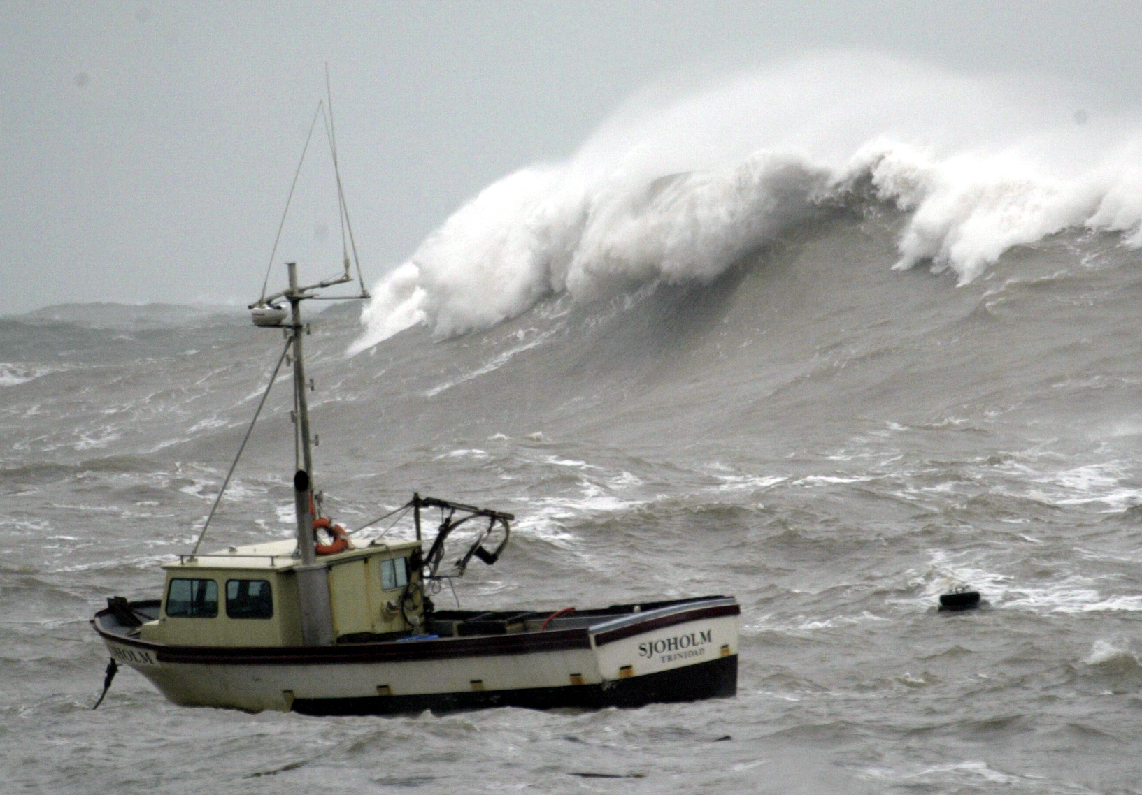 NORCAL STORM BOAT A WEA MANDATORY CREDIT PHOTOGRAPHER 20040226 000000 SHAUN WALKER MBR TRINIDAD CA USA CAEUR101 STORM WAVES SJOHOLM AP EUREKA TIMES-STANDARD The fishing boat Sjoholm bobs and tilts while moored in Trinidad Harbor as 20-foot-plus breakers crash in Trinidad, Calif., Thursday afternoon, Feb. 26, 2004. The previous night had swells up to 30 feet high. Northern California was doused with more wet and windy weather Thursday as the tail end of a fierce winter storm brought huge swells and {{ }}