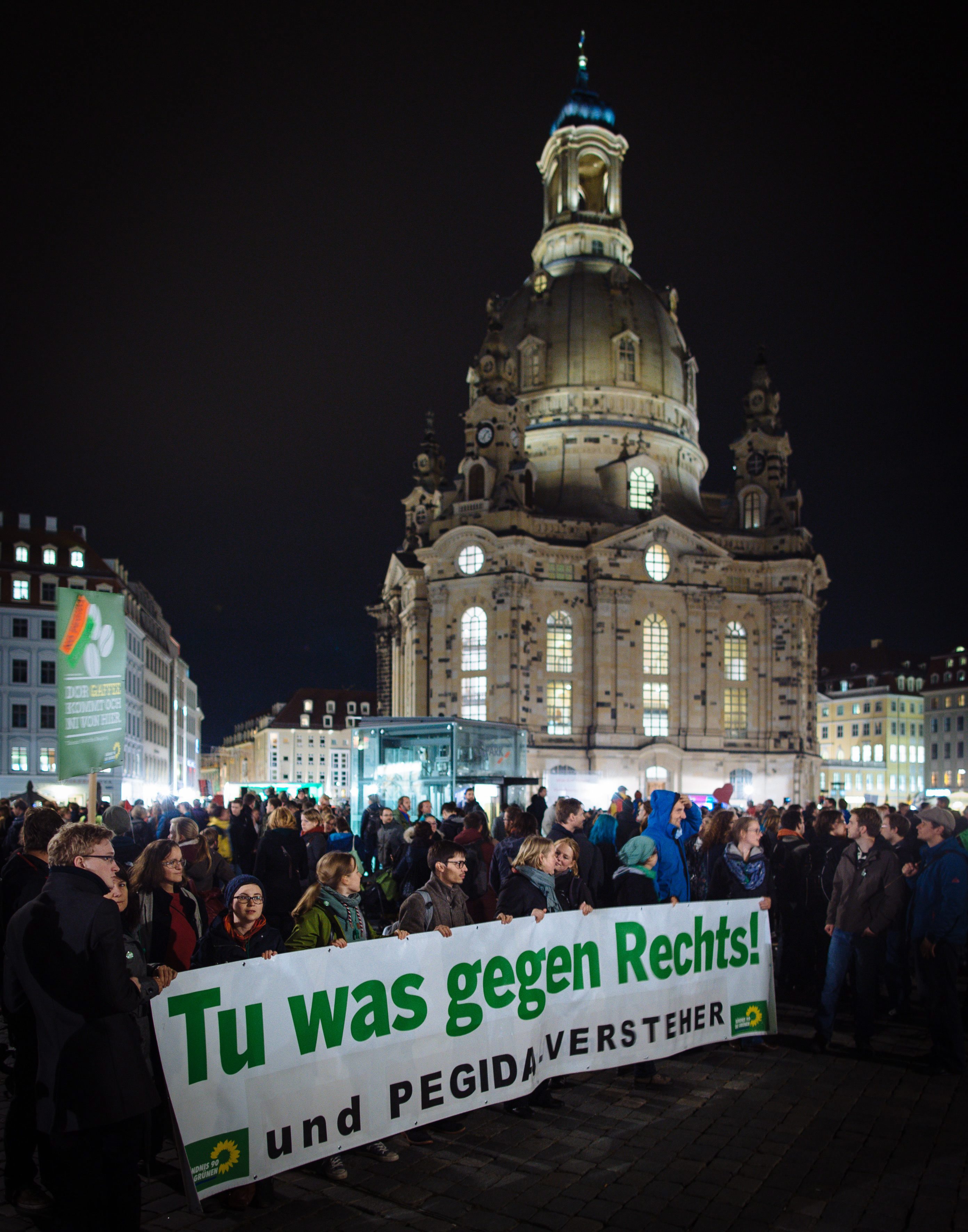 Έτσι, στη Δρέσδη οι αντιτιθέμενοι προχώρησαν σε αντιδιαδήλωση εναντίον της Pegida. Η κινητοποίηση εναντίον του κινήματος έφτασε μεταξύ των 4.000 και 6.000 ατόμων. Ανάλογου μεγέθους ήταν και η συγκέντρωση της Pegida -έστω κι αν ήταν αρκετά μικρότερη σε σύγκριση με την προηγούμενη εβδομάδα.