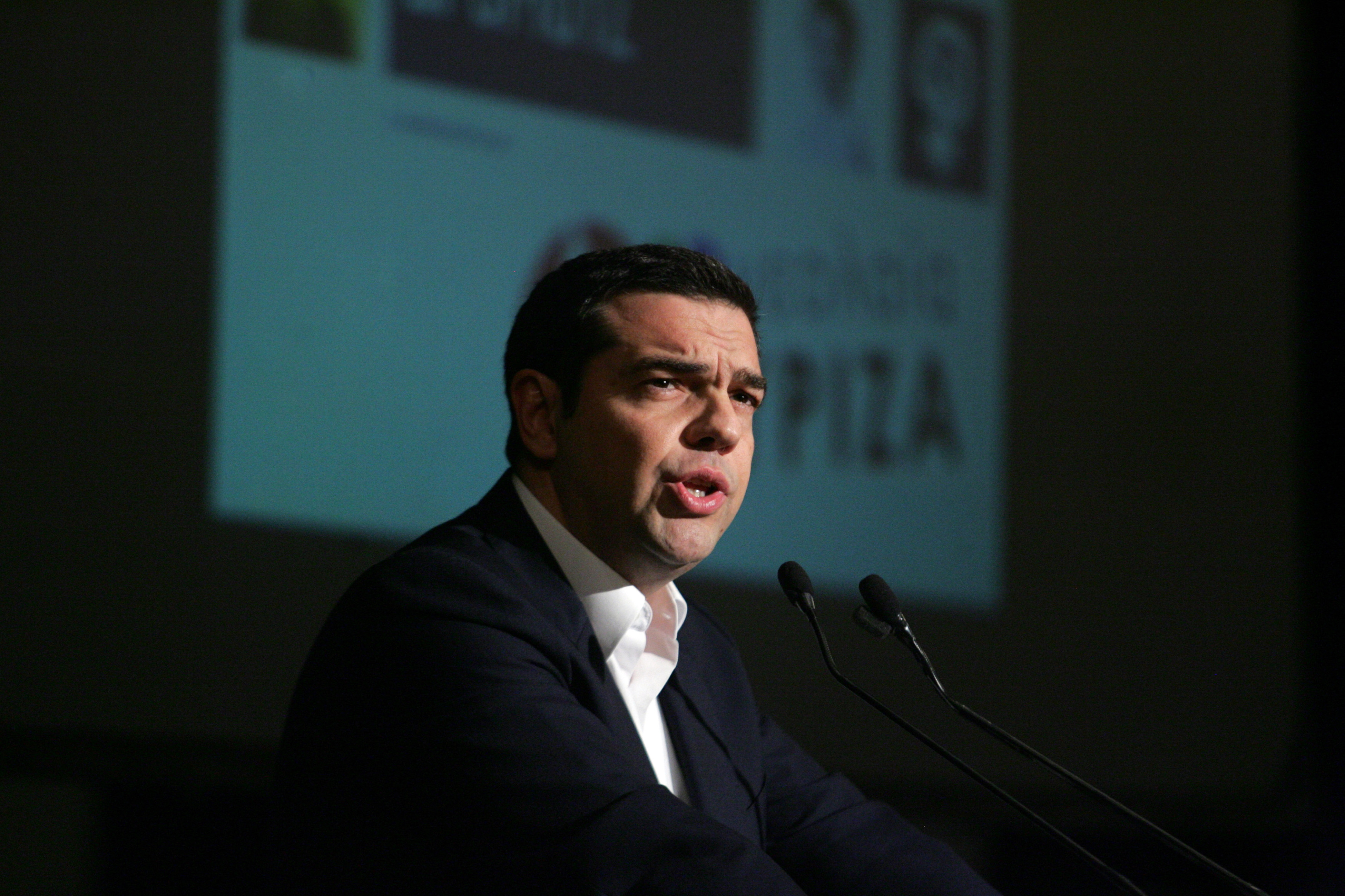 Ο πρωθυπουργός Αλέξης Τσίπρας κατά το χαιρετισμό του στην έναρξη της 2ης Πανελλαδικής Συνδιάσκεψης της Νεολαίας του ΣΥΡΙΖΑ, Παρασκευή 20 Νοεμβρίου 2015. ΑΠΕ - ΜΠΕ/ΑΠΕ - ΜΠΕ/Αλεξανδρος Μπελτές (File: 15986099.jpg )