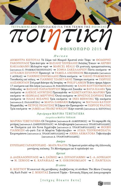 Στο νέο (φθινοπωρινό) τεύχος της «Ποιητικής» το κεντρικό αφιέρωμα αφορά το έργο της κορυφαίας και τραγικής ρωσίδας ποιήτριας Μαρίνας Τσβετάγιεβα.