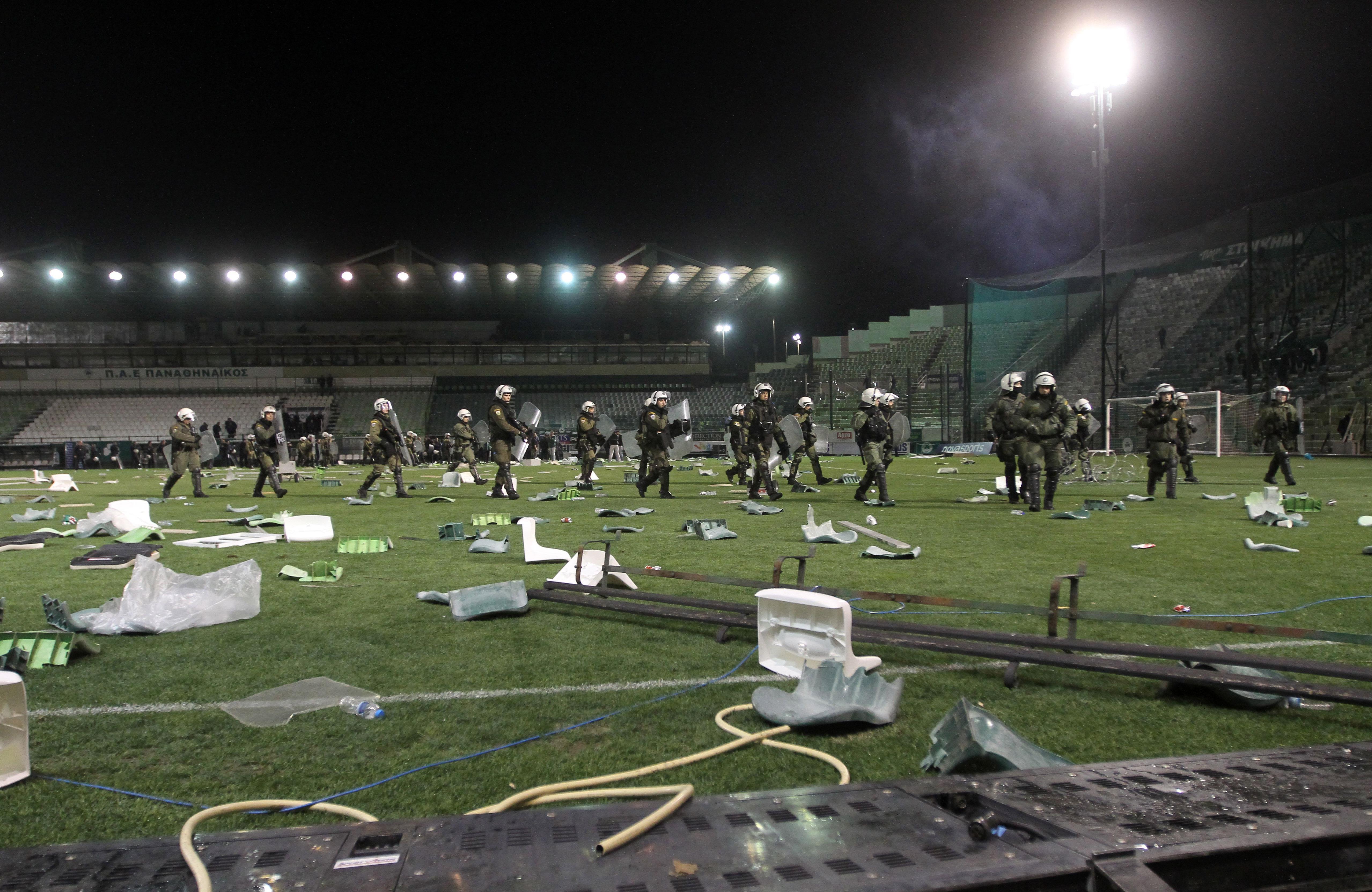 The ‘Greens’ argue that the referee Andreas Pappas is largely responsible for the cancellation of the match, claiming that he instigated the violent response from the Panathinaikos fans.