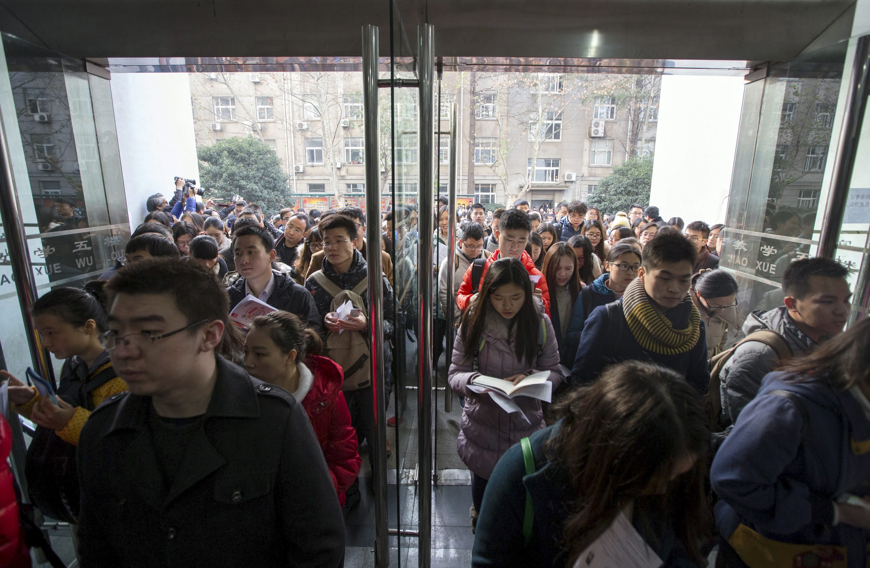 Συνολικά 930.000 Κινέζοι στήθηκαν στις ουρές προκειμένου να λάβουν μέρος στον γραπτό διαγωνισμό για την πρόσληψη δημοσίων υπαλλήλων ελπίζοντας ότι θα καταλάβουν μια από τις 27.000 διαθέσιμες θέσεις. Ο αριθμός των υποψηφίων, μάλιστα, ήταν μειωμένος κατά 60.000 σε σχέση με περύσι.