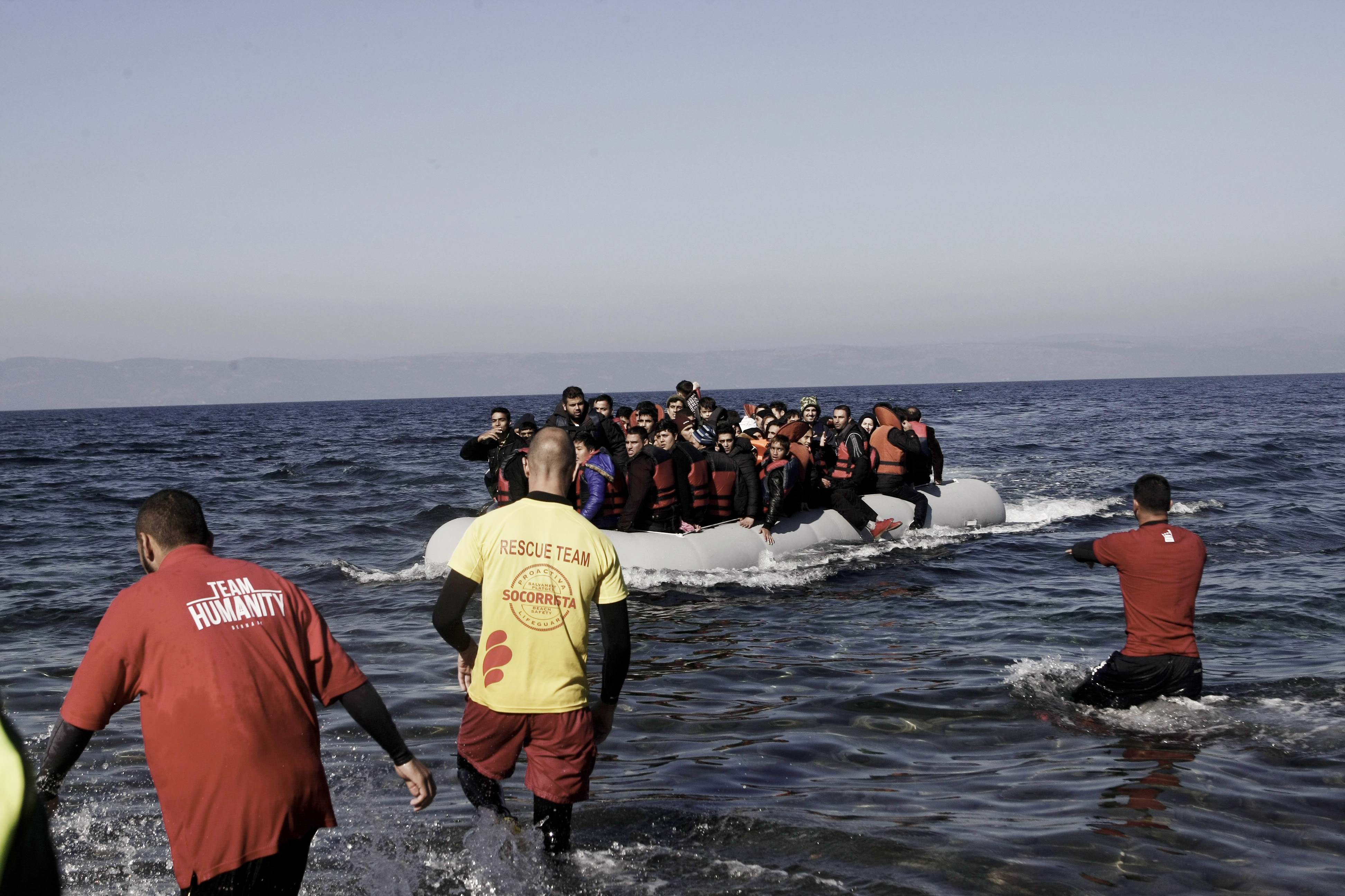 Ενώ συμβαίνουν όλα αυτά, σε χαμηλό ύψος πάνω από τη σωστική λέμβο με τα μέλη των ΜΚΟ πετά ελικόπτερο της δύναμης της Frontex στο νησί.