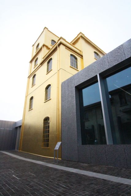 Παράλληλα, στον μόλις εγκαινιασμένο πολιτιστικό πολυχώρο της Fondazione Prada, που αναβαθμίζει μια ολόκληρη βιομηχανική περιοχή του Largo Isarco νότια του Μιλάνου, στο έξοχα ανακαινισμένο από τον Rem Koolhaas πρώην εργοστάσιο εμφιάλωσης ποτών, οι φύλακες, που είναι επιφορτισμένοι να δίνουν πληροφορίες –σε άπταιστα αγγλικά –για τις εκθέσεις και το κτίριο, είναι απόφοιτοι μεταπτυχιακών μουσειολογίας και πολιτιστικής διαχείρισης διάρκειας δύο ετών. Σε αυτό το βιομηχανικό συγκρότημα των 17.000 τ.μ. και των 11.000 τ.μ. εκθεσιακών χώρων, ένα από τα κτίρια, το «Στοιχειωμένο Σπίτι» είναι ντυμένο με φύλλα χρυσού 24 καρατίων. Εδώ ό,τι λάμπει είναι χρυσός που, κατά δήλωση του αρχιτέκτονα, στοιχίζει λιγότερο από το καλλιτεχνικά χυμένο αφρώδες αλουμίνιο στις νέες κατασκευές.