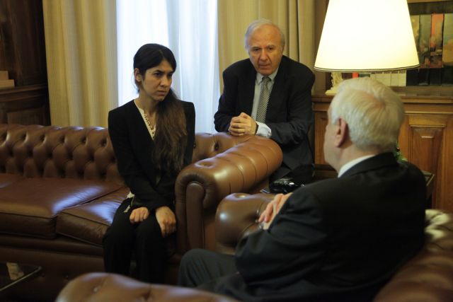 Έκκληση να ακουστεί η φωνή της στην Ευρώπη ώστε να μάθει η διεθνής κοινότητα τις φρικαλεότητες που διαπράττουν οι τζιχαντιστές του Ισλαμικού Κράτους απηύθυνε από το Προεδρικό Μέγαρο στην Αθήνα η γυναίκα-σύμβολο στον αγώνα κατά της ISIS, η Γεζίντι, ΝάντιαΜουράντ Μπασέ Τάχα, κατά τη συνάντησή της με τον Προκόπη Παυλόπουλο.