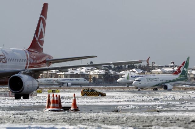 Εκατοντάδες πτήσεις από και προς τα δύο αεροδρόμια της Κωνσταντινούπολης ματαιώνονται την Πέμπτη και την Παρασκευή καθώς η πόλη καλύφθηκε από πυκνό χιόνι. Τα σχολεία έκλεισαν και η οδική κυκλοφορία παρέλυσε.