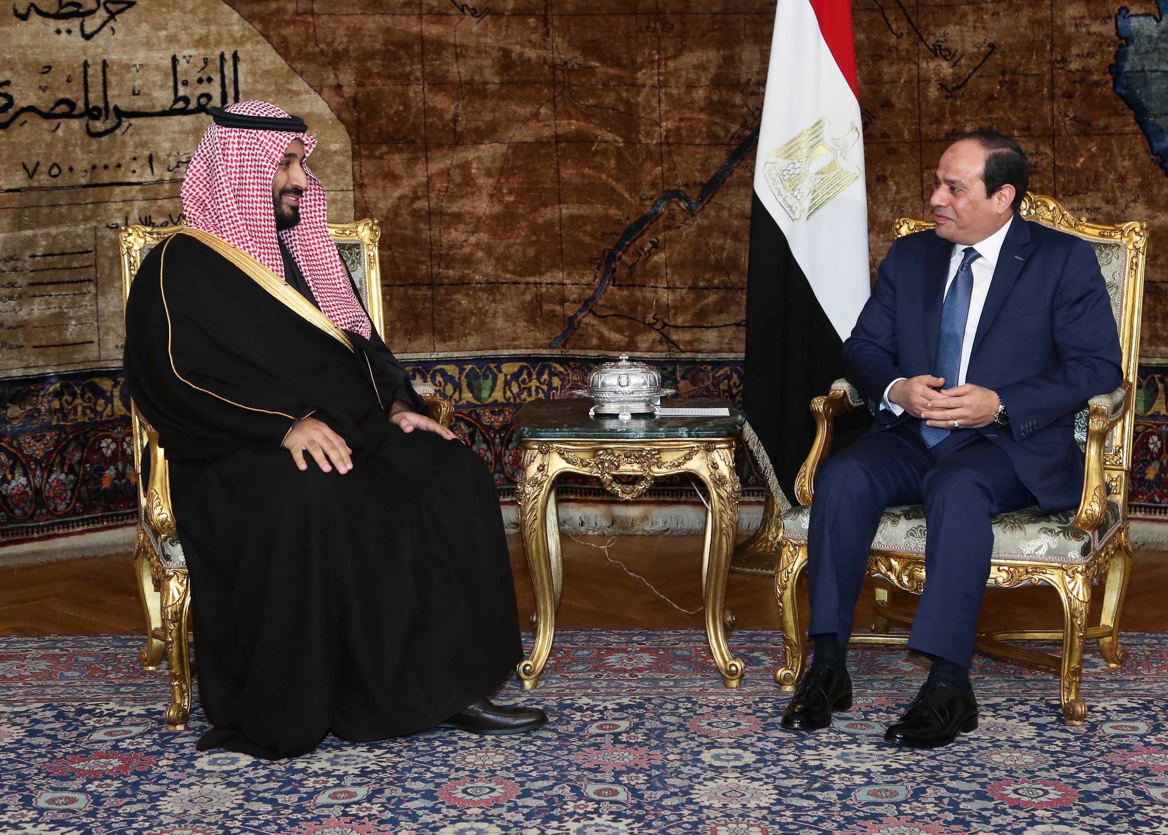 epa05070265 A handout picture made available by the Office of the Egyptian President shows the Deputy Crown Prince, Second Deputy Prime Minister and Defense Minister of Saudi Arabia, Mohammad bin Salman al-Saud (L), meeting with the Egyptian President, Abdel Fattah al-Sisi (R), in Cairo, Egypt, 15 December 2015. The Saudi Defense Minister announced 15 December the formation of a military coalition of some 34 Muslim majority countries to combat terrorism. According to reports he arrived in Egypt at the head of a delegation to discuss cooperation between the two countries in a number of civilian areas. EPA/OFFICE OF THE EGYPTIAN PRESIDENT HANDOUT EDITORIAL USE ONLY/NO SALES (File: 16068606.jpg )