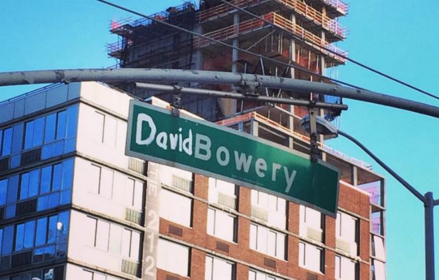 Οι φίλοι του θρυλικού σταρ της ροκ μουσικής συναντήθηκαν στη γωνία των οδών Χιούστον και Μπόουερι το βράδυ του Σαββάτου στη διάρκεια της δεύτερης μεγαλύτερης χιονοθύελλας στην ιστορία της πόλης. Το κρύο και το χιόνι δεν μπόρεσαν να εμποδίσουν τα μέλη του Lisa Project να μετονομάσουν τον δρόμο σε οδό «Ντέιβιντ Bowery».