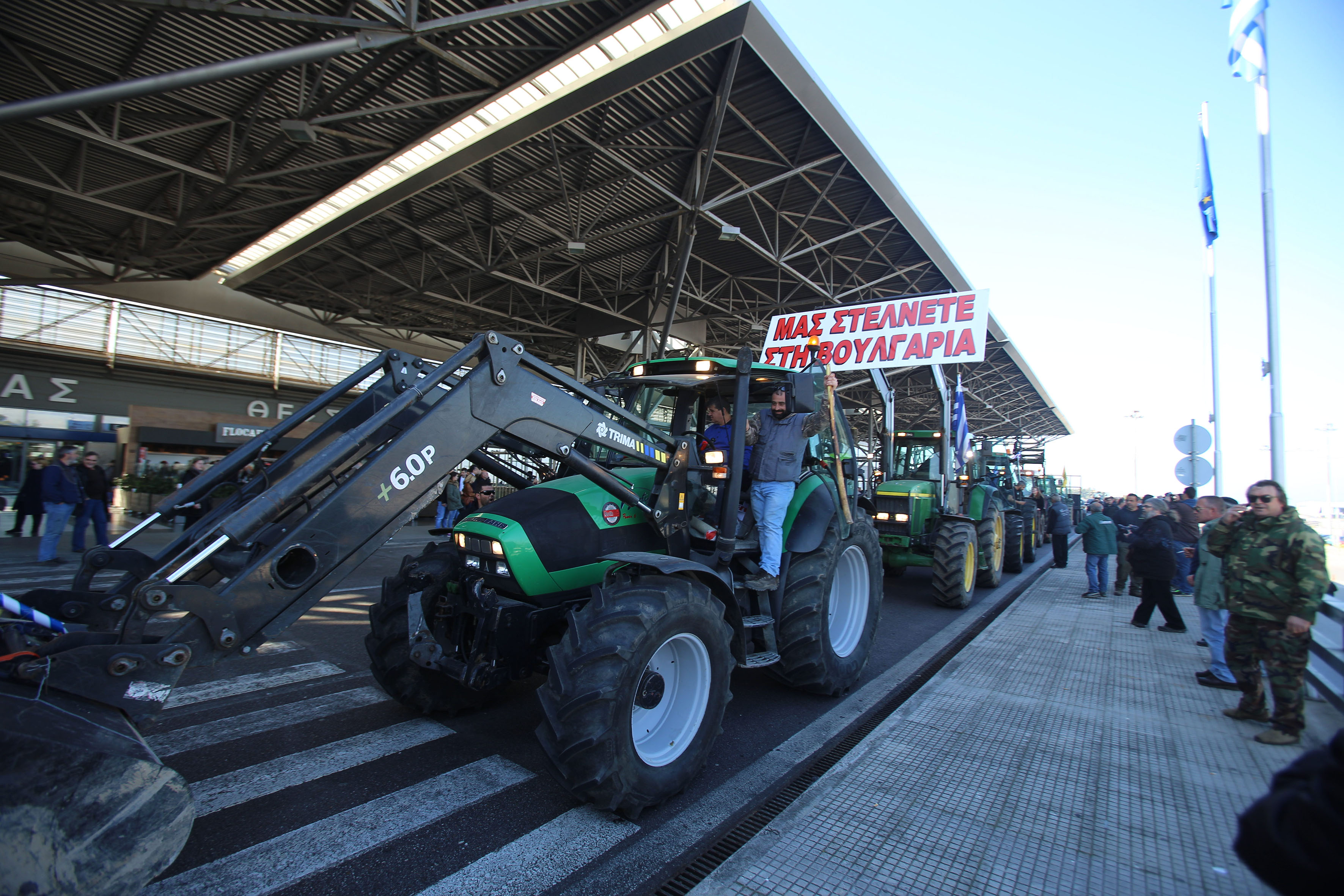 Την πρόθεσή τους να «πολιορκήσουν» το αεροδρόμιο «Μακεδονία» στη Θεσσαλονίκη, γνωστοποίησαν στην αστυνομική διεύθυνση αγρότες και κτηνοτρόφοι του μπλόκου της αερογέφυρας Θέρμης και του μπλόκου που βρίσκεται στη διασταύρωση του κρατικού αερολιμένα. «Ήδη βρίσκομαι σε συζητήσεις με την αστυνομία. Θα πάμε με τα τρακτέρ μας, μέχρι εκεί που θα μας ανακόψουν την πορεία τα ΜΑΤ» ανέφερε ο Δ. Παπαδάκης, μέλος της συντονιστικής επιτροπής του μπλόκου της Θέρμης. Η απόφαση της γενικής συνέλευσης των δύο μπλόκων προβλέπει ότι αγρότες να εγκατασταθούν στο «Μακεδονία» από τις 16:00 και για ένα 24ωρο. Ο κ. Παπαδάκης ξεκαθάρισε δε ότι «θα είναι ανοιχτοί παρακαμπτήριοι δρόμοι, προκειμένου να πραγματοποιήσουν τις πτήσεις τους όσοι το έχουν προγραμματίσει»