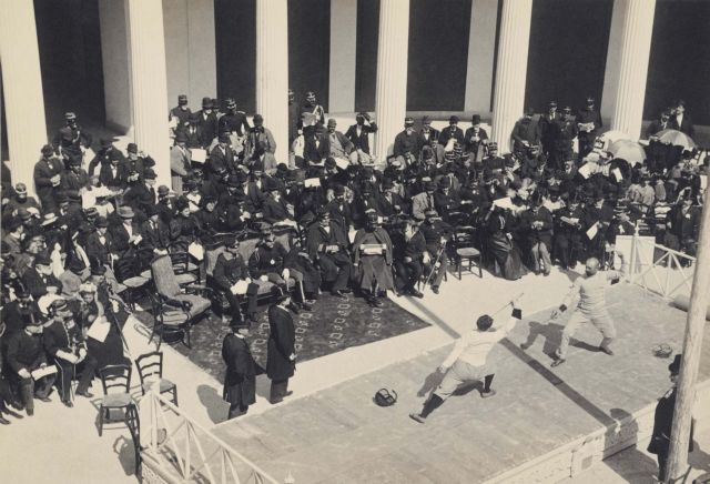 Στο πλευρό των Αγώνων βρέθηκε και η νέα τέχνη της εποχής, η φωτογραφία. Ξεχωριστός εκπρόσωπος των διάσημων φωτογράφων που κάλυψαν τους Αγώνες είναι ο γερμανός Άλμπερτ Μάγιερ (Δρέσδη 1857- 1924 ), ο οποίος ήδη από το 1895 είχε αναλάβει τη θέση του επίσημου φωτογράφου της γερμανικής αθλητικής αποστολής που θα ταξίδευε στην Αθήνα. Το φωτογραφικό λεύκωμα που αποτέλεσε την αφετηρία της έκθεσης, αναγγέλθηκε από τον τύπο της εποχής πριν από την δημιουργία του, αφού η ελληνική εφημερίδα της Τεργέστης «Ημέρα», αλλά και η αθηναϊκή «Ακρόπολις» το παρουσίασε ως την δημιουργία που θα αποτελούσε το ενθύμιο των Αγώνων για τις βασιλικές Αυλές τις εποχής και για τα μέλη της Επιτροπής των Ολυμπιακών Αγώνων.