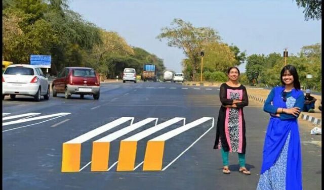 Σε μια πρωτότυπη κίνηση για να μειώσει τα τροχαία ατυχήματα προχώρησε η κυβέρνηση της Ινδίας, βάφοντας σε τρισδιάστατη μορφή (3D) τις διαβάσεις των πεζών.