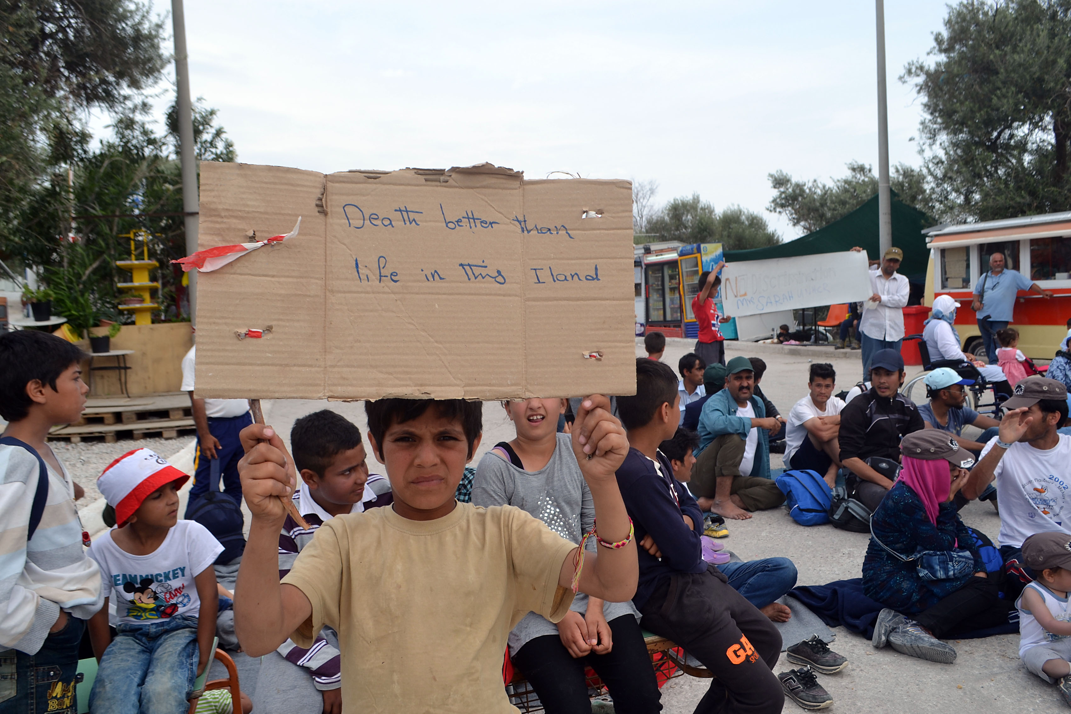 «Βρισκόμαστε εδώ από τα τέλη Μαρτίου. Ενάμιση μήνα τώρα. Μας ζήτησαν να υποβάλουμε αίτηση ασύλου. Μείναμε στη φυλακή επί ένα μήνα και τώρα μας είπαν πως μπορούμε να βγούμε από τη φυλακή αλλά να μείνουμε στο νησί. Δεν μας επιτρέπεται να φύγουμε. Δεν έχουμε χρήματα, δεν μπορούμε να ζήσουμε όλη μας τη ζωή εδώ. Μετέτρεψαν τη Μυτιλήνη όλη σε μια μεγάλη φυλακή για εμάς» λέει ο Αμπντουλάχ, Σύρος πρόσφυγας.