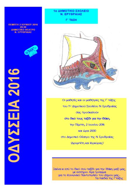 Οι μαθητές και οι μαθήτριες στην πρόσκλησή τους κάνουν λόγο για μια «Οδύσσεια» για να ξεκινήσουν οι προσκεκλημένοι το δικό τους ταξίδι για την Ιθάκη μαζί με τα παιδιά: