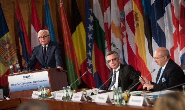 Διεθνή συνεργασία σε όλα τα επίπεδα στον αγώνα κατά της τρομοκρατίας ζήτησε ο Γερμανός υπουργός Εξωτερικών Φρανκ-Βάλτερ Στάινμαγερ κατά την έναρξη του διήμερου συνεδρίου για τη μάχη κατά της τρομοκρατίας που διοργανώνει ο ΟΑΣΕ -την προεδρία του οποίου ασκεί το τρέχον έτος το Βερολίνο.