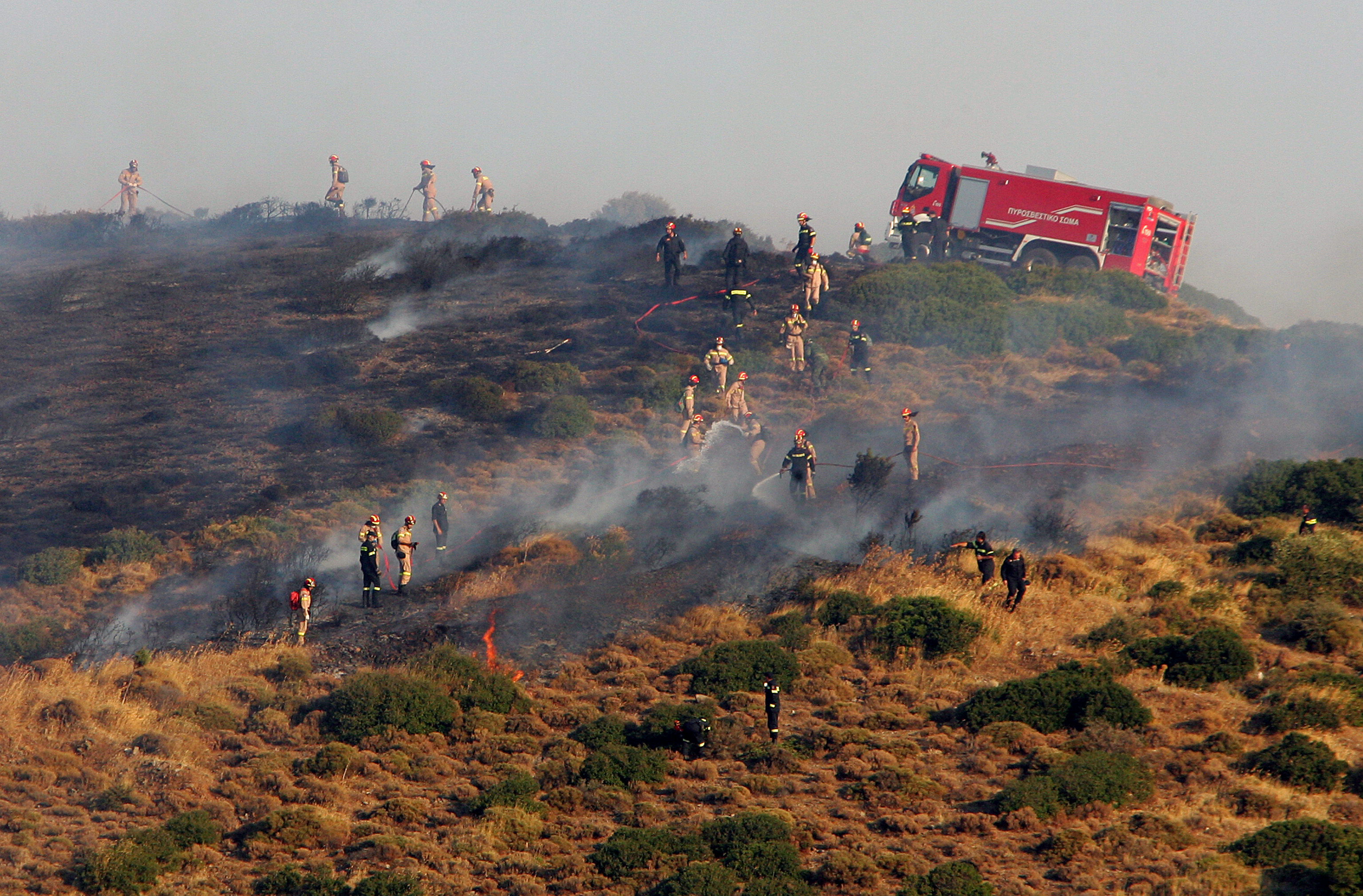 Η Πυροσβεστική ενημερώθηκε στις 13.27 και έστειλε στο σημείο 30 πυροσβέστες με 10 οχήματα.