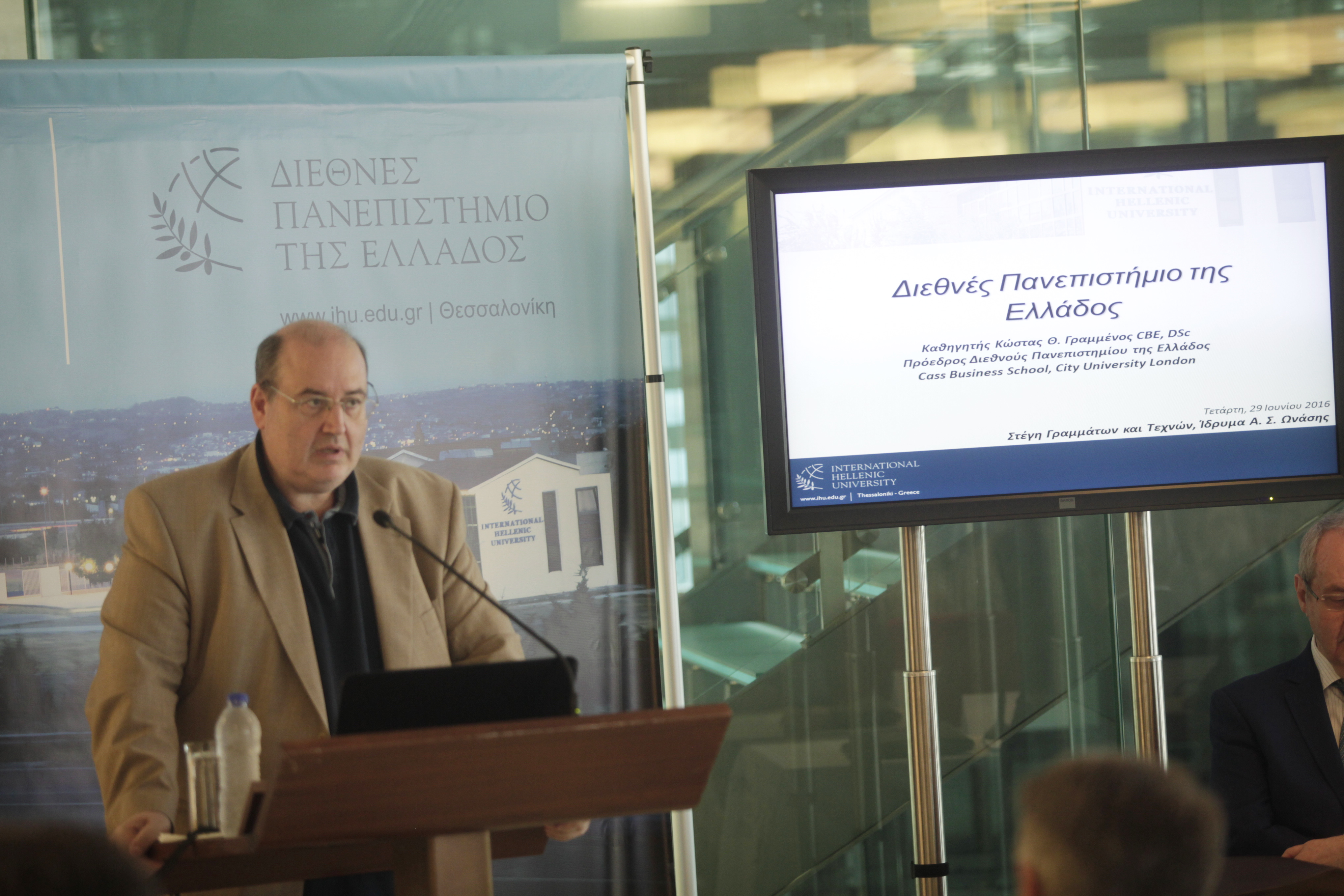 Ο Πρόεδρος Καθηγητής Κώστας Θ. Γραμμένος CBE, DSc, και τα μέλη της Διοικούσας Επιτροπής του Διεθνούς Πανεπιστημίου της Ελλάδος παραχωρησαν ε Συνέντευξη Τύπου