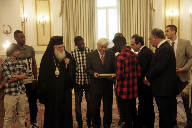 Ο Πρόεδρος της Δημοκρατίας μαζί με τον Αρχιεπίσκοπο Αθηνών και πάσης Ελλάδος, Ιερώνυμο δέχθηκαν στο Προεδρικό Μέγαρο αντιπροσωπεία αποτελούμενη από πέντε νέους που γεννήθηκαν στη Γουινέα, το Αφγανιστάν, την Ακτή Ελεφαντοστού και την Γκάμπια και φιλοξενεί ο φιλανθρωπικός οργανισμός «Αποστολή» της Ιεράς Αρχιεπισκοπής Αθηνών στον Ξενώνα Υποδοχής και Φιλοξενίας Ασυνόδευτων Ανηλίκων Προσφύγων.