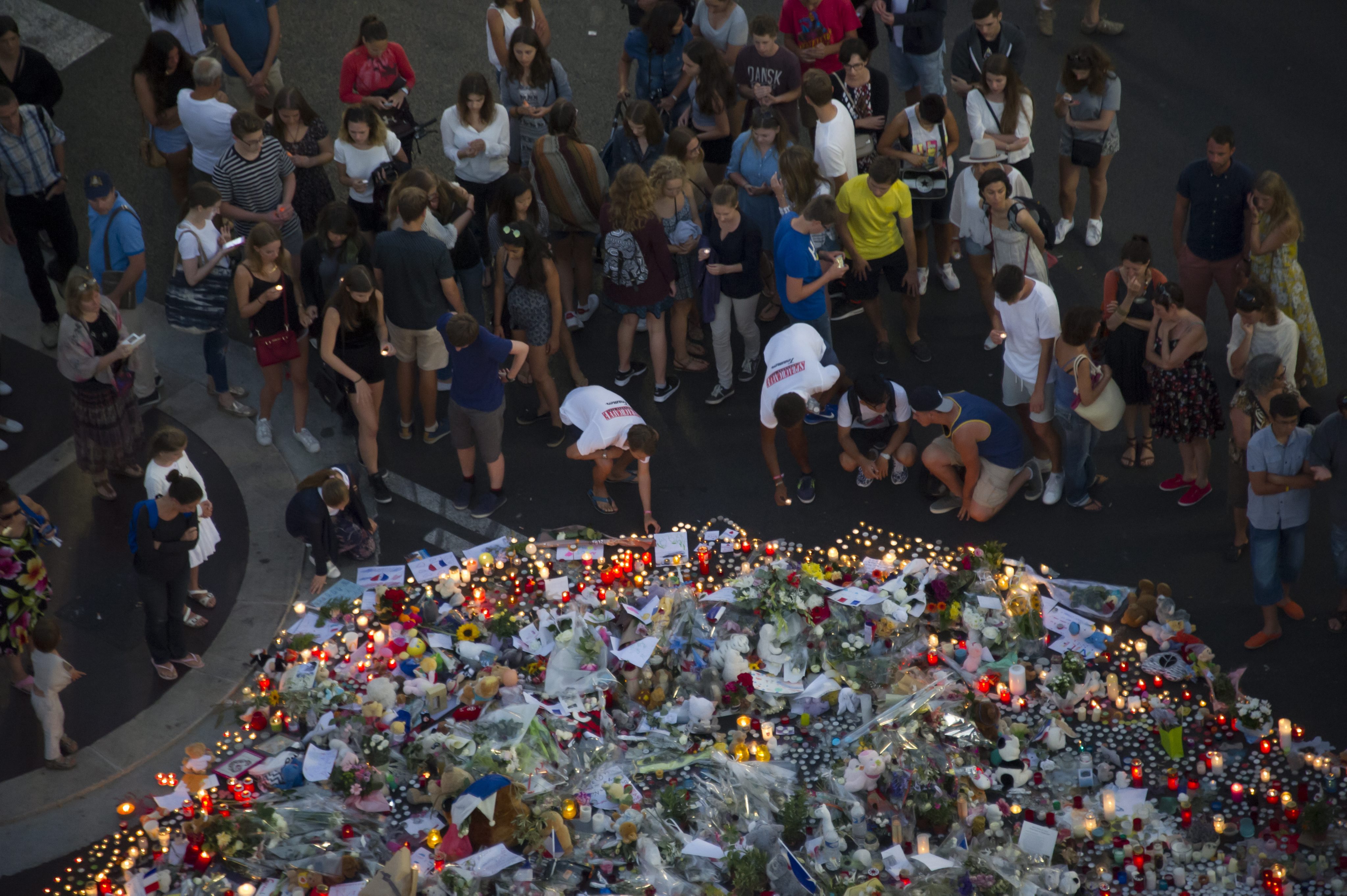 «Θα σκέφτομαι εσάς το υπόλοιπο της ζωής μου», «γιατί εμάς;», «δεν θα σας ξεχάσουμε ποτέ»: αυτά είναι μερικά μόνο από τα σημειώματα που άφησε ο κόσμος στην Προμενάντ ντεζ Ανγκλέ στη Νίκαια, σε ένα αυτοσχέδιο μνημείο που έχει στηθεί εκεί όπου ο 31χρονος έσπειρε τον θάνατο με το φορτηγό του. Πολλά είναι στο μνημείο και τα λουλούδια, τα κεριά, τα λούτρινα ζωάκια που αφήνει ο κόσμος στη μνήμη των θυμάτων.